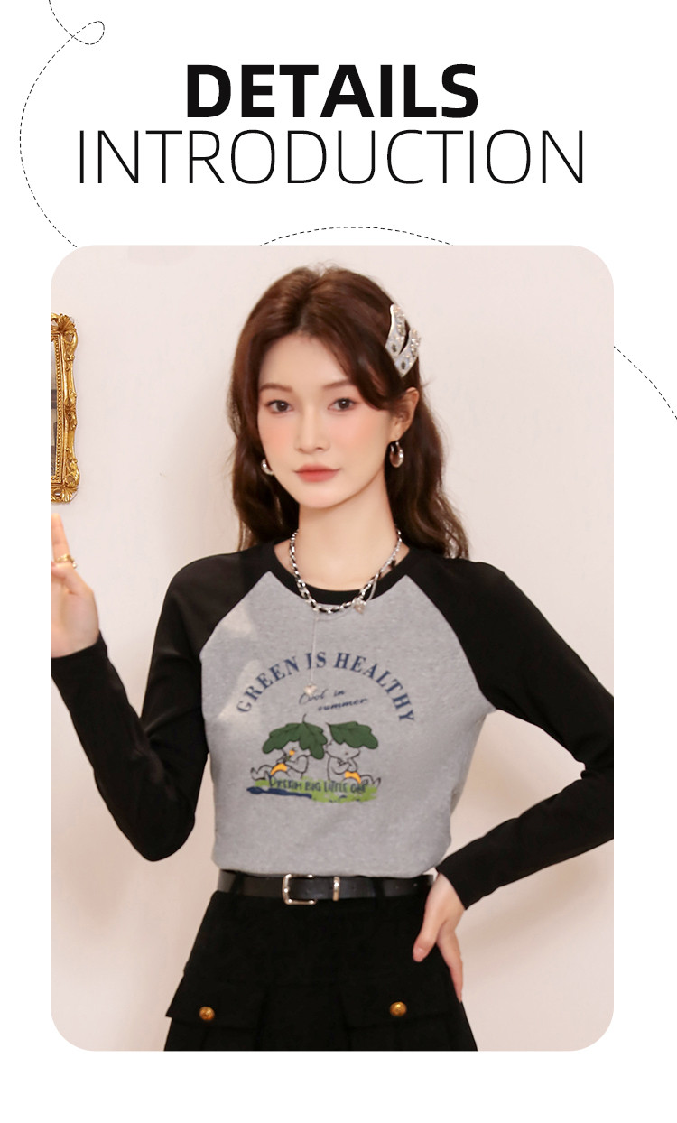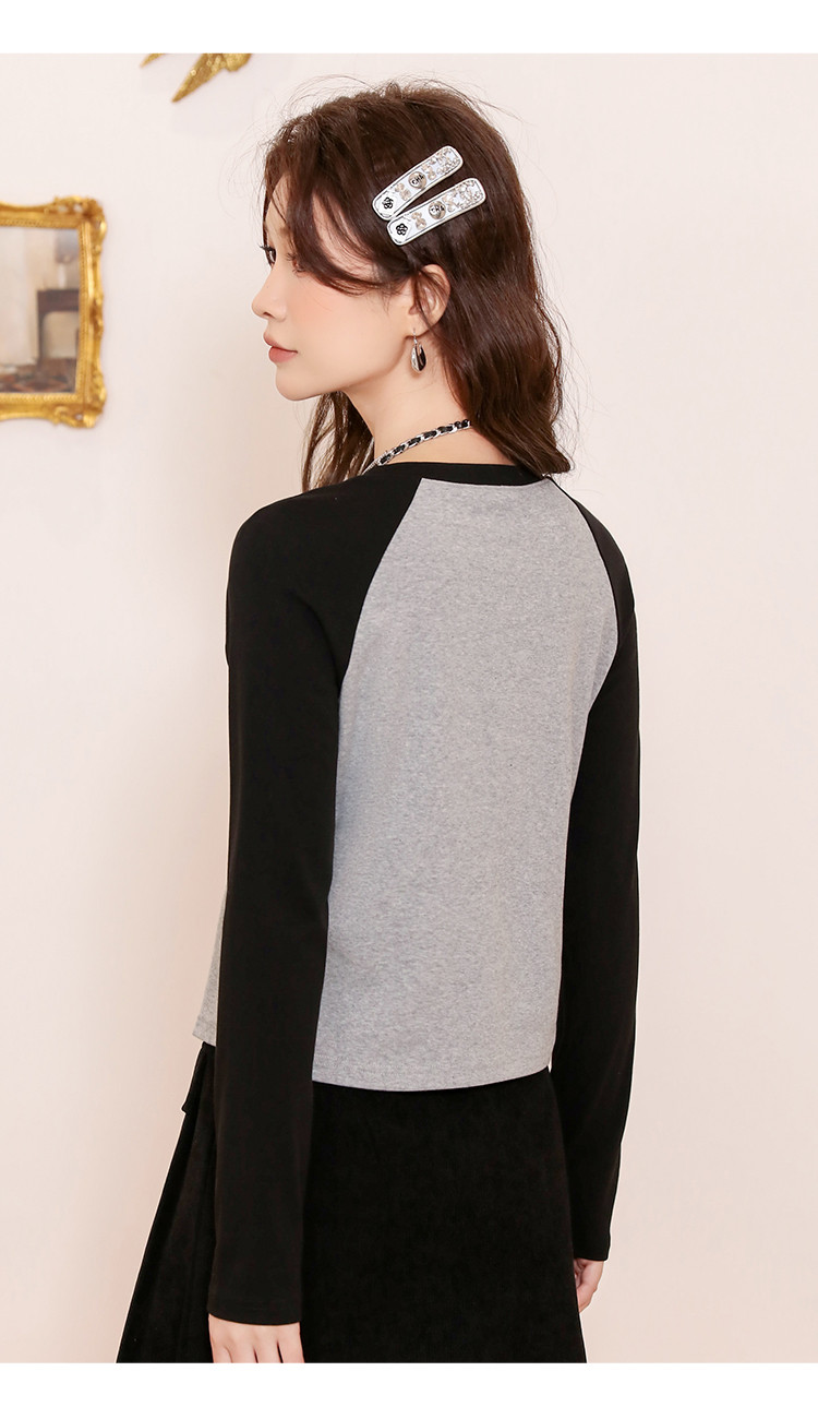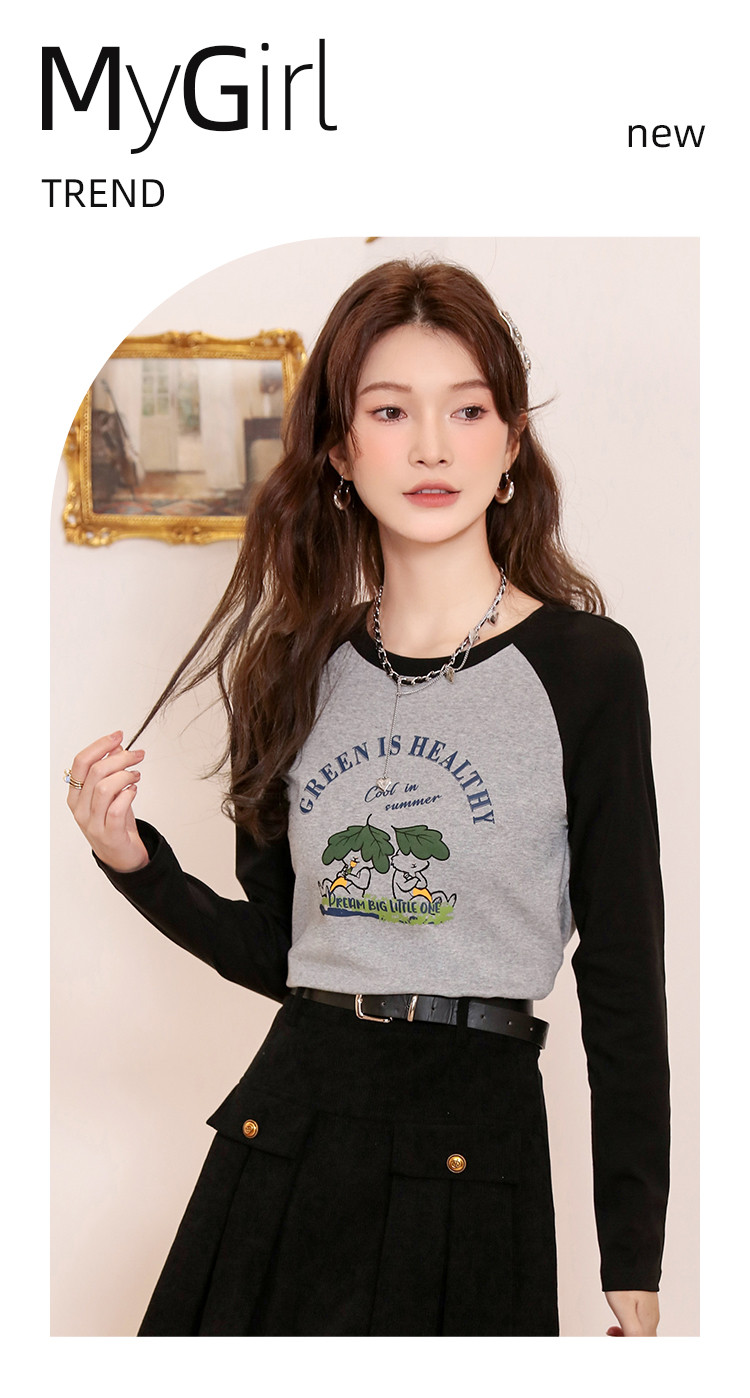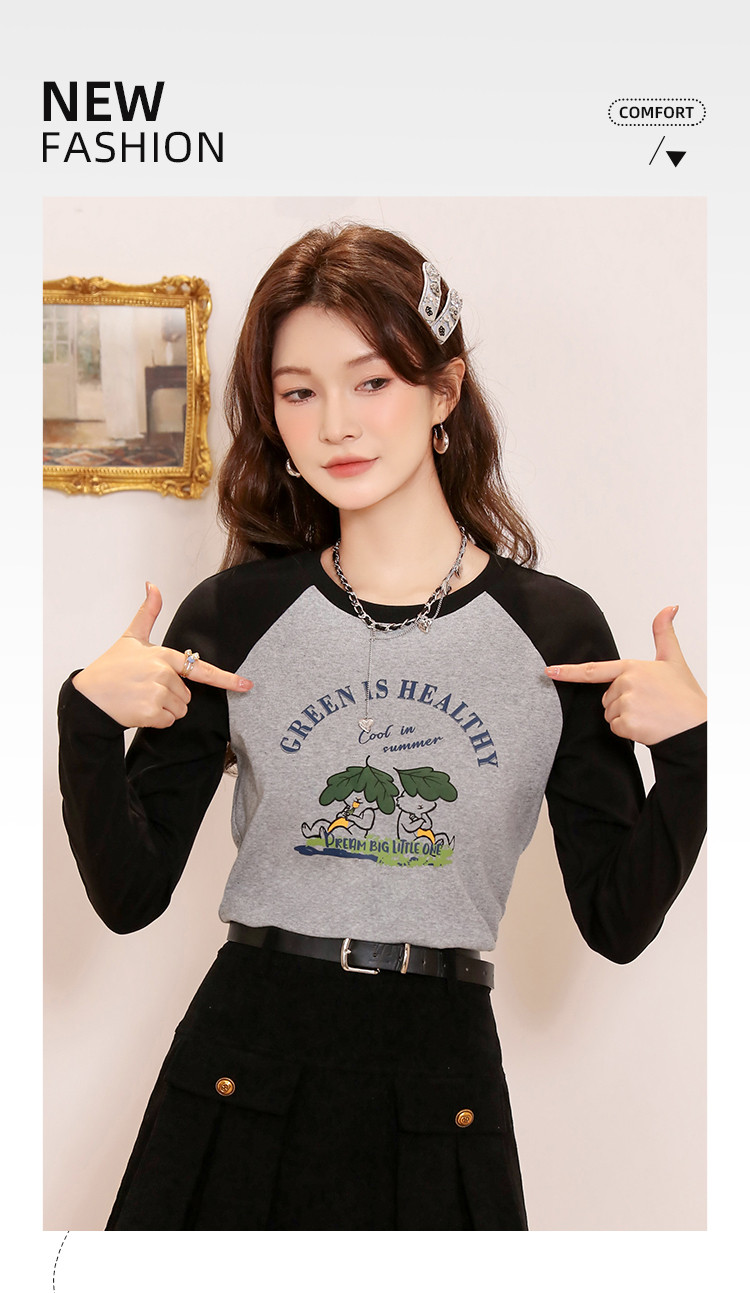 商品名称:春季女装撞色设计女式t恤插肩休闲t恤女亲肤长袖打底上衣女 775192
