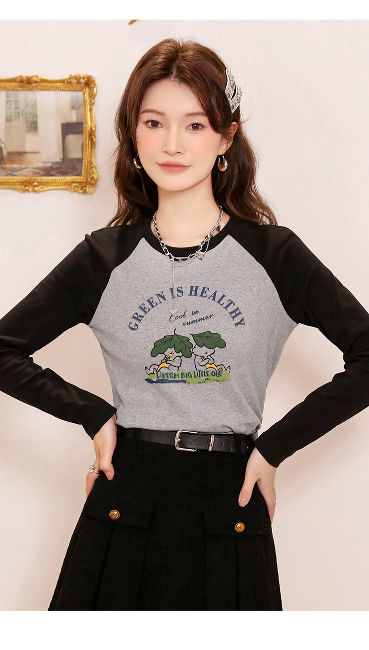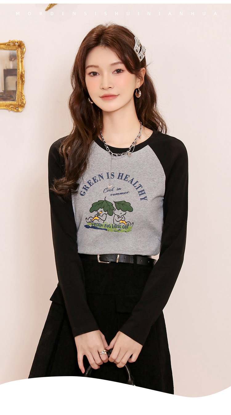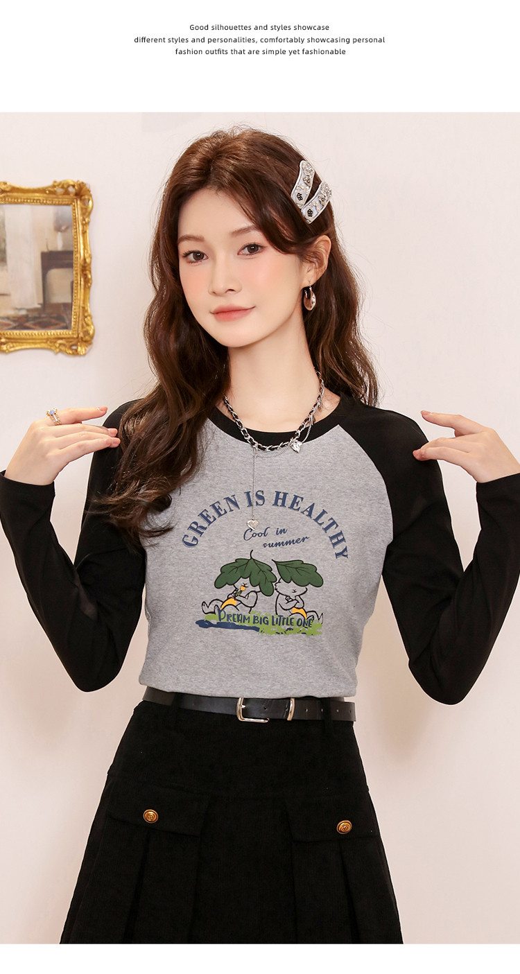 商品名称:春季女装撞色设计女式t恤插肩休闲t恤女亲肤长袖打底上衣女 775192