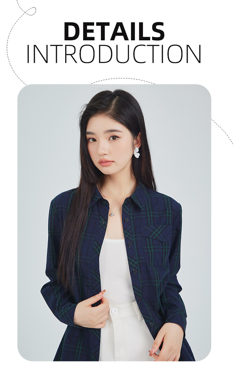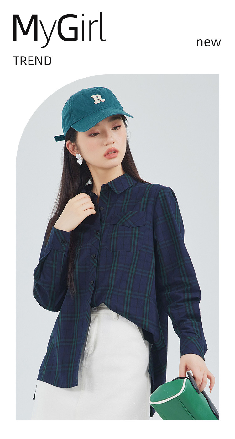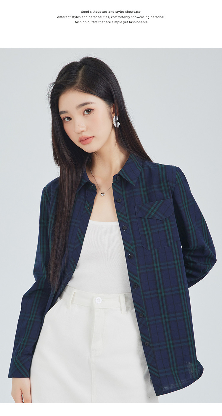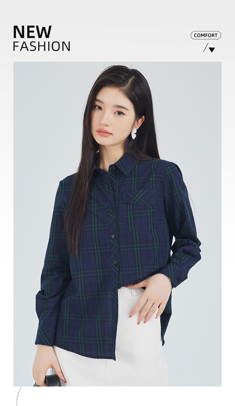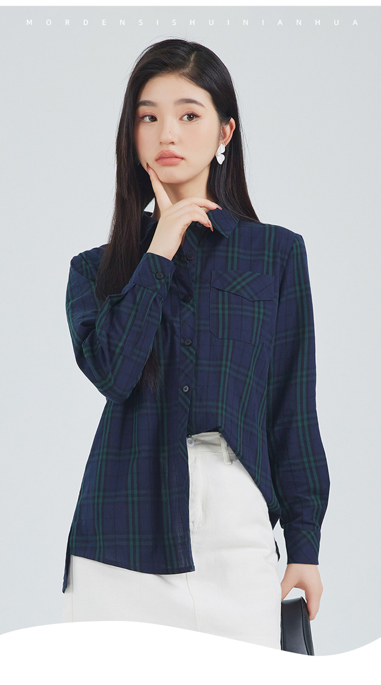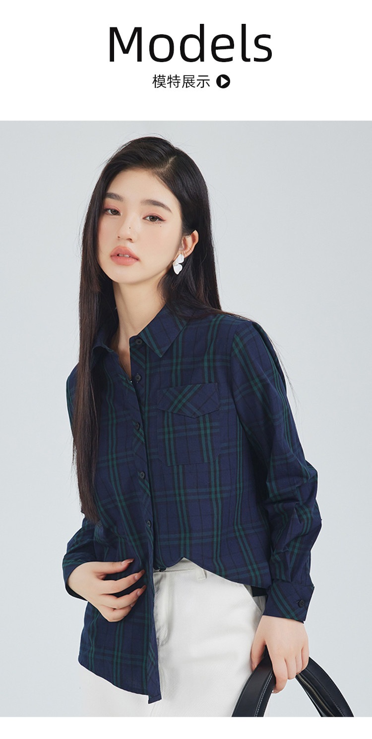 商品名称:【格纹衬衫女】春季时尚休闲复古休闲宽松长袖衬衣上衣女 164760