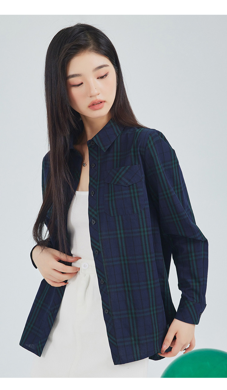 【格纹衬衫女】春季时尚休闲复古休闲宽松长袖衬衣上衣女 164760
