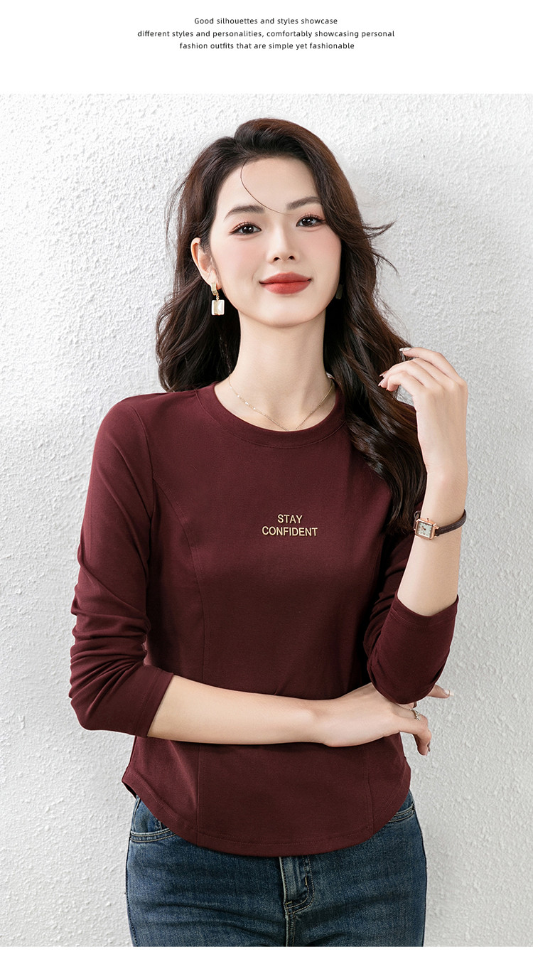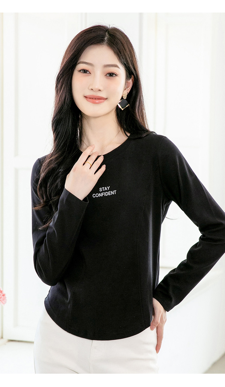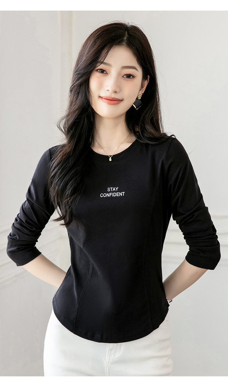 春季时尚休闲舒适打底衫女字母印花修身显瘦长袖T恤女上衣 103320