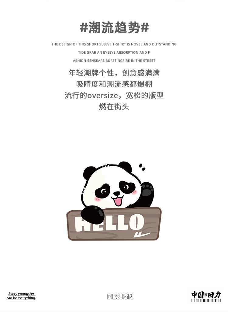 商品名称:【220克重磅】t恤短袖男青少年国潮熊猫针织上衣宽松纯棉体恤 277139