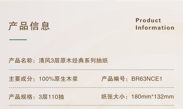 商品名称:"清风抽纸原木纯品3层 110抽1提6包 【BR63NC】"