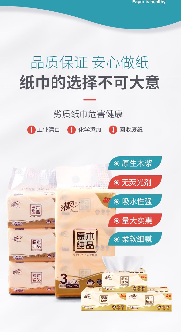 商品名称:"清风抽纸2层200抽原 木纯品抽纸1提"