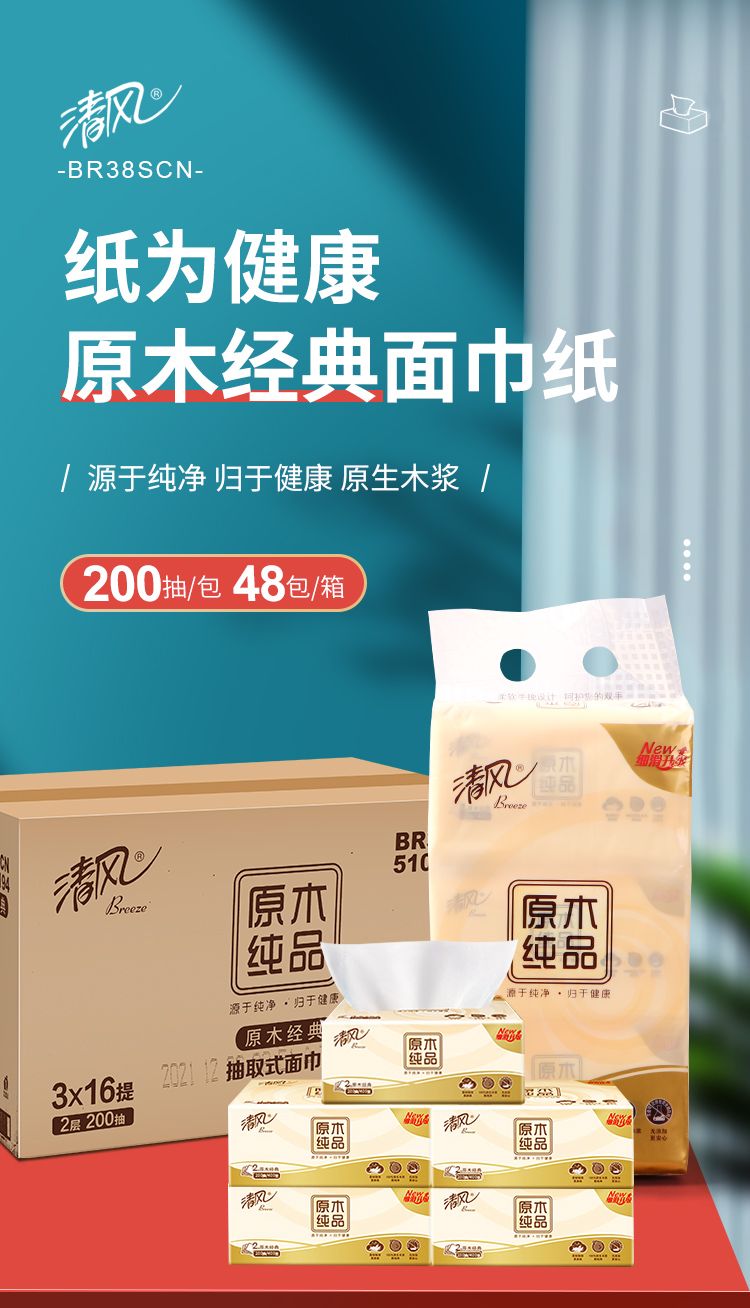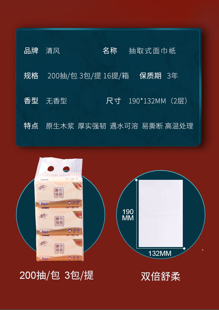 "清风抽纸2层200抽原 木纯品抽纸1提"