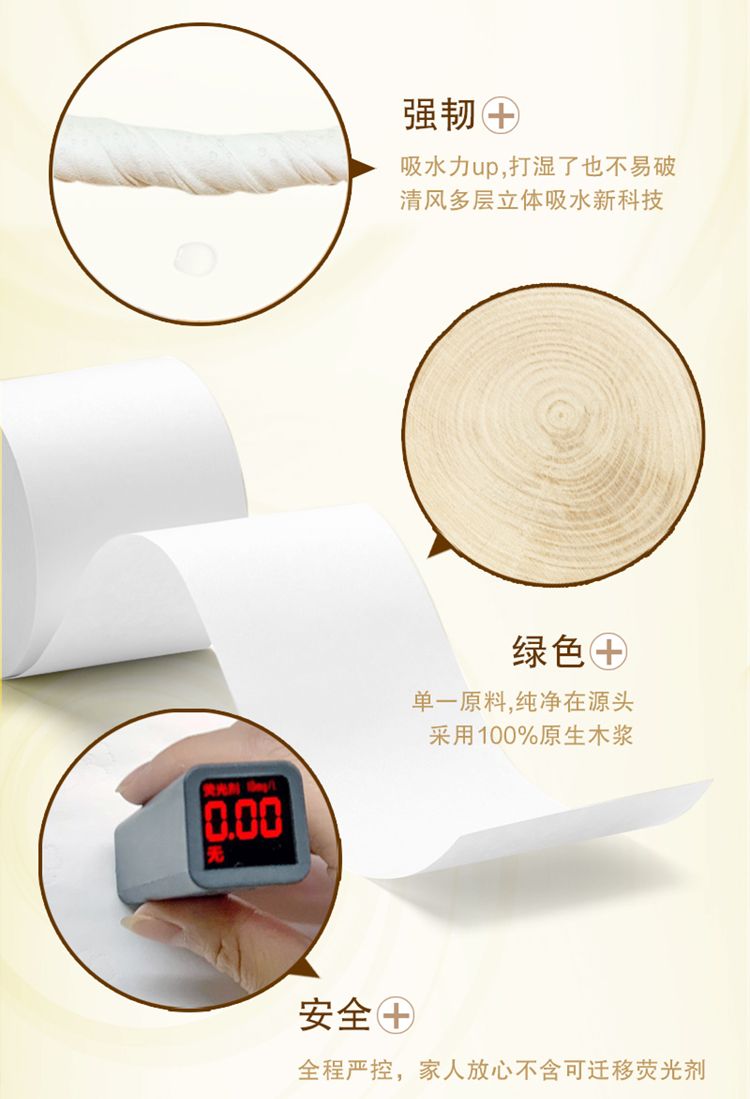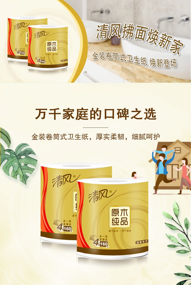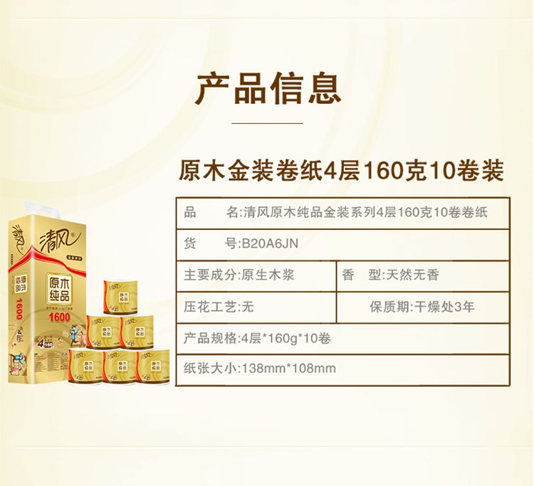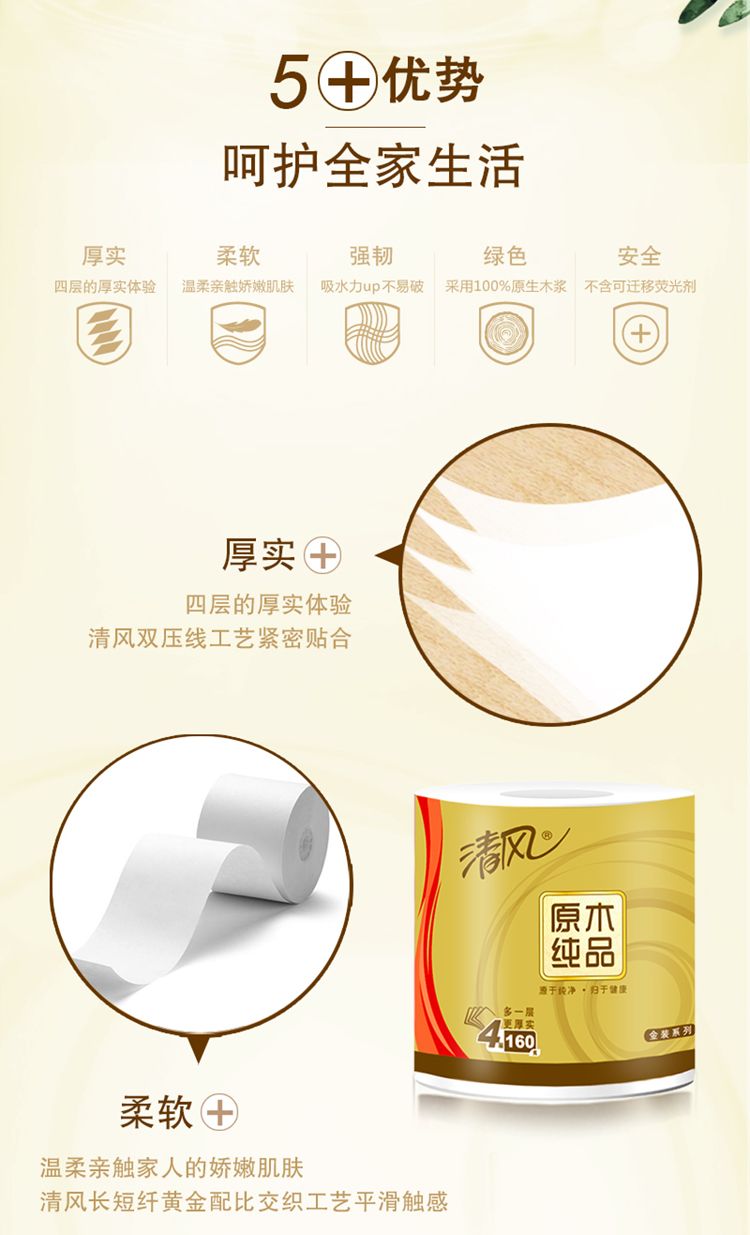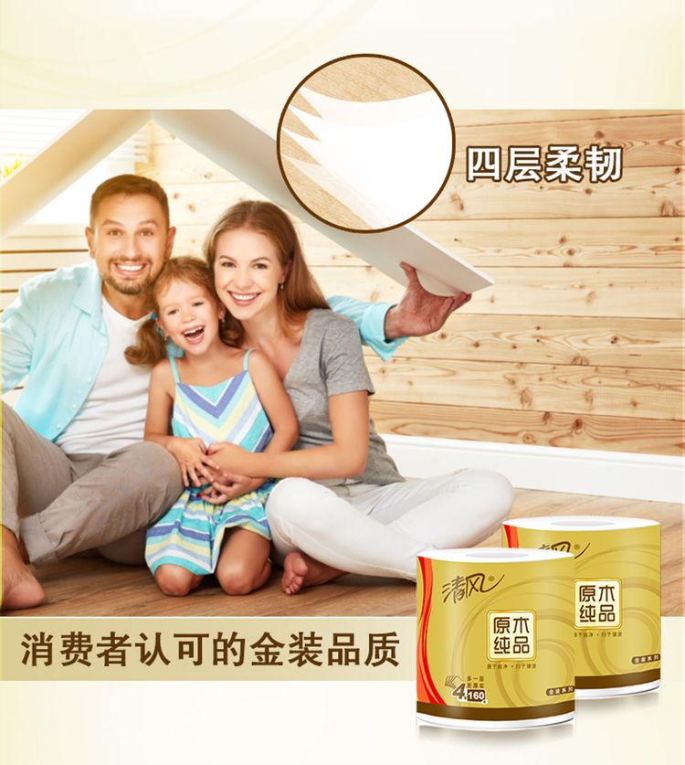商品名称:"清风卷纸金装4层 1600克有芯卷纸1提"