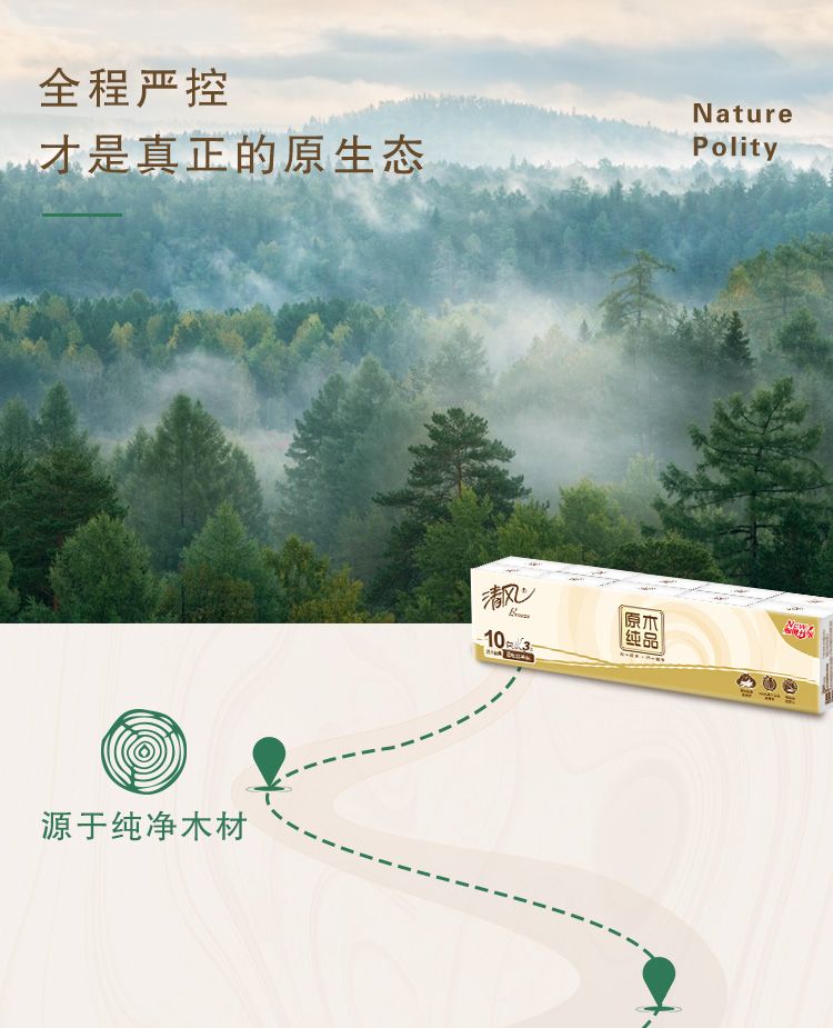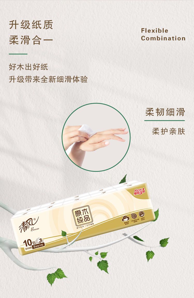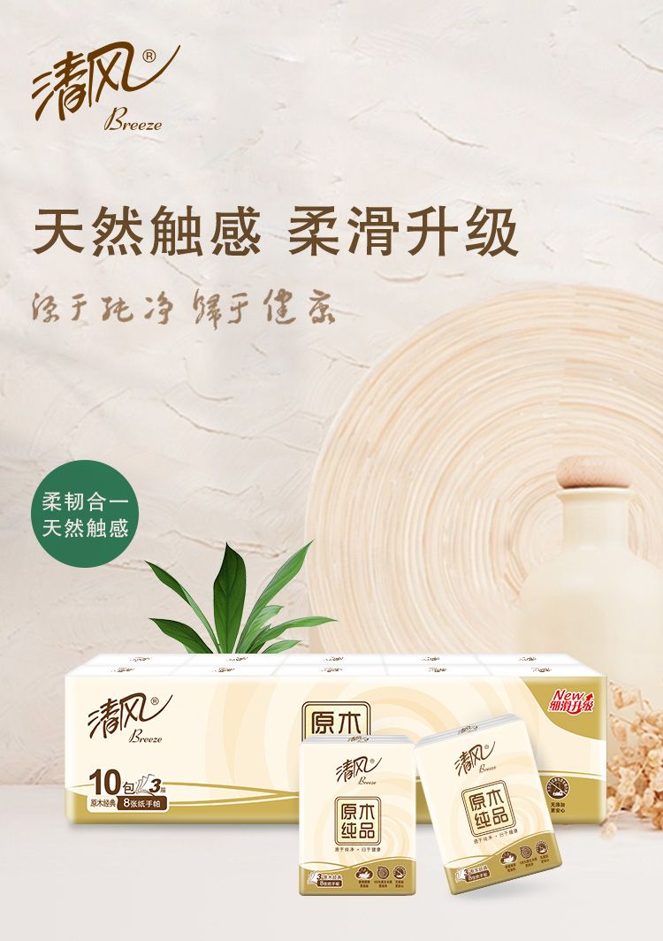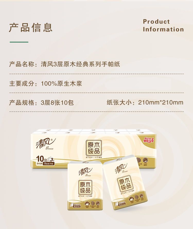 "清风原木手帕纸3层8张10包 [B6 6AAC M]"