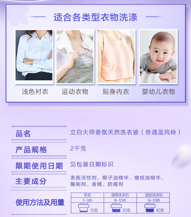 商品名称:立白大师洗衣液普罗旺斯薰衣草2kg
