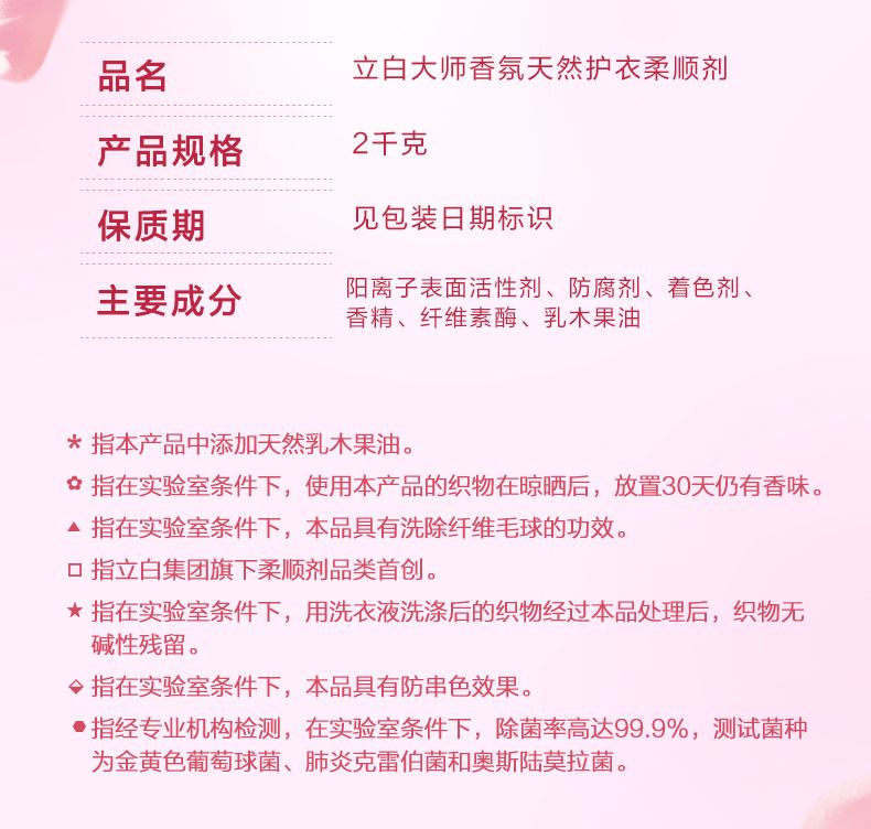 商品名称:立白大师香氛柔顺剂2kg瓶装