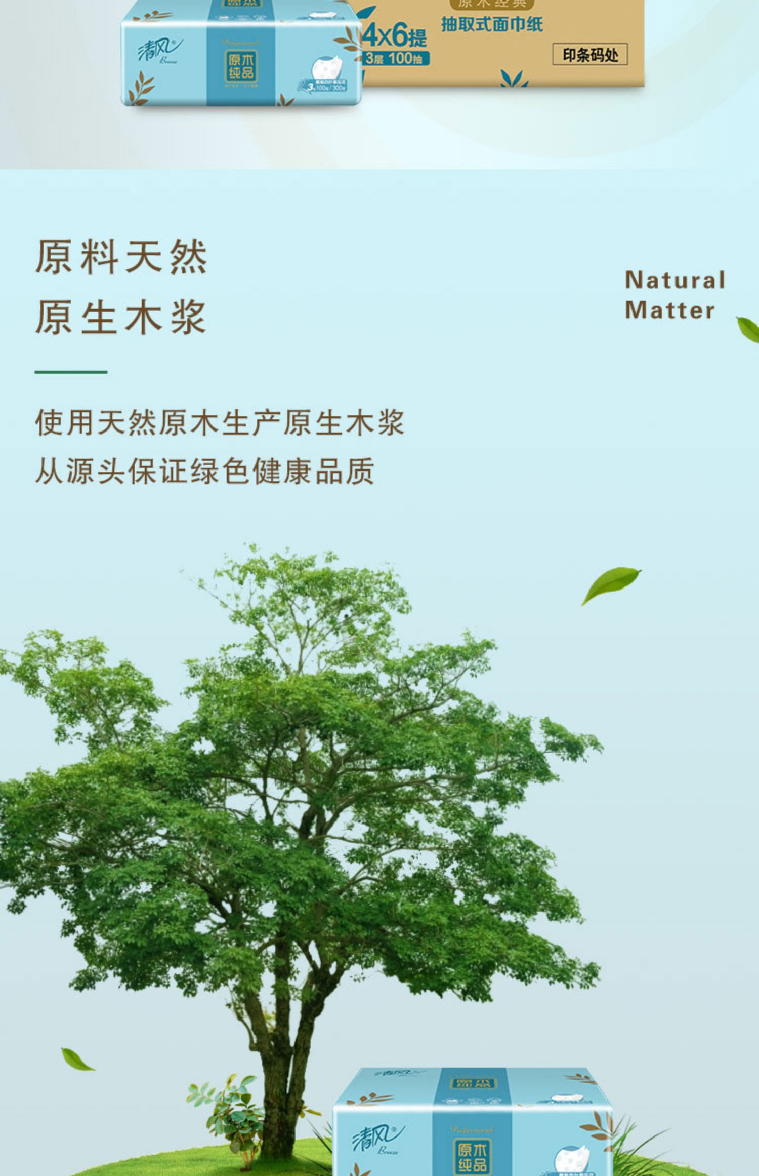 "清风抽纸原木纯品3层 100抽6提24包整箱 【BR40AQ】"