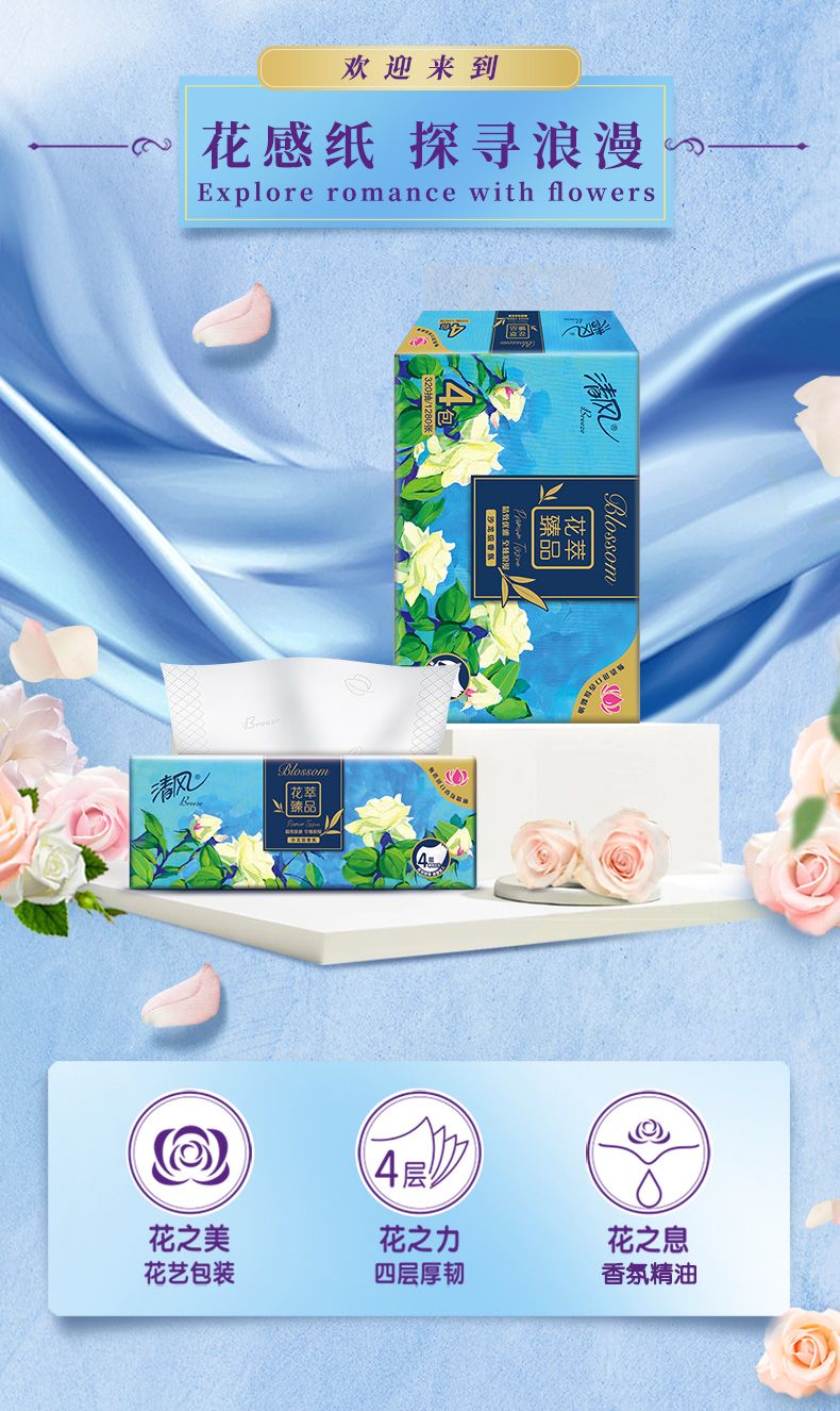 "清风抽纸花萃臻品4层80 抽压花纸巾1提4包 【BR41SHC】"