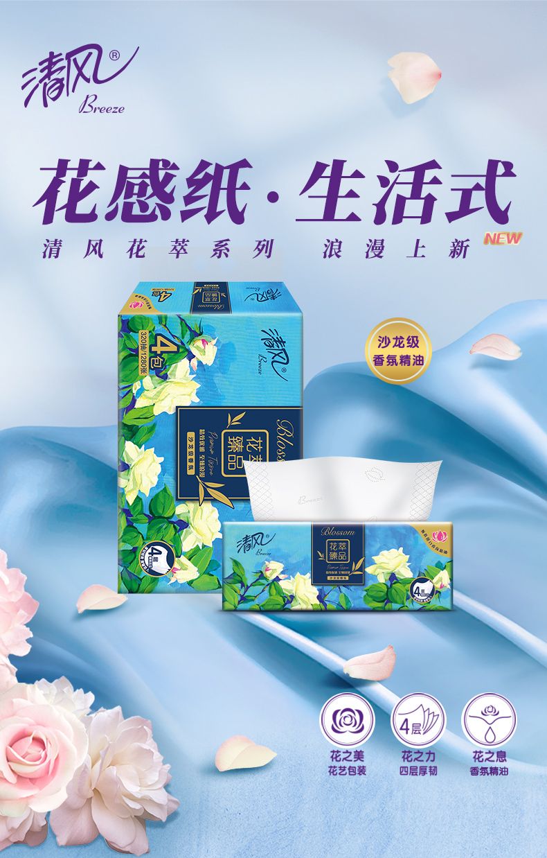 商品名称:"清风抽纸花萃臻品4层80 抽压花纸巾1提4包 【BR41SHC】"