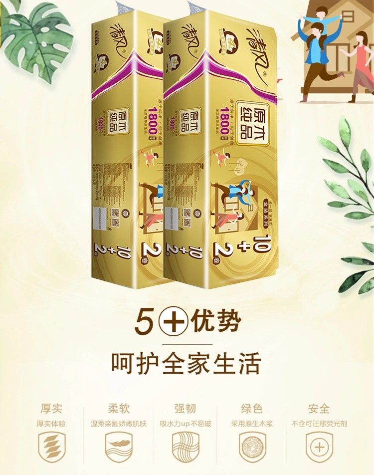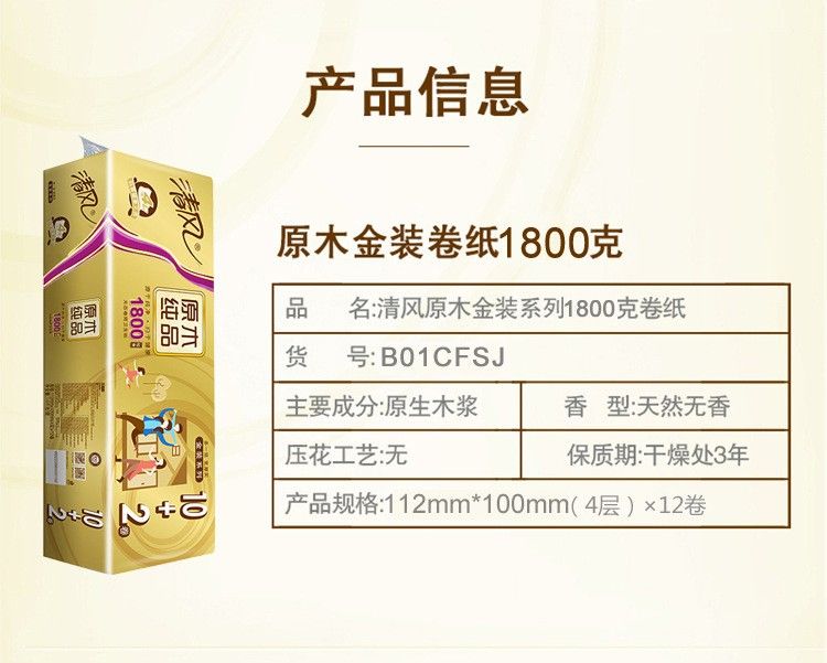 商品名称:"清风卷纸金装1800克 实心卷纸1提"