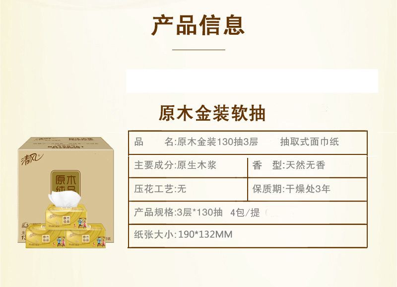 商品名称:"清风抽纸金装3层130 抽24包整箱"