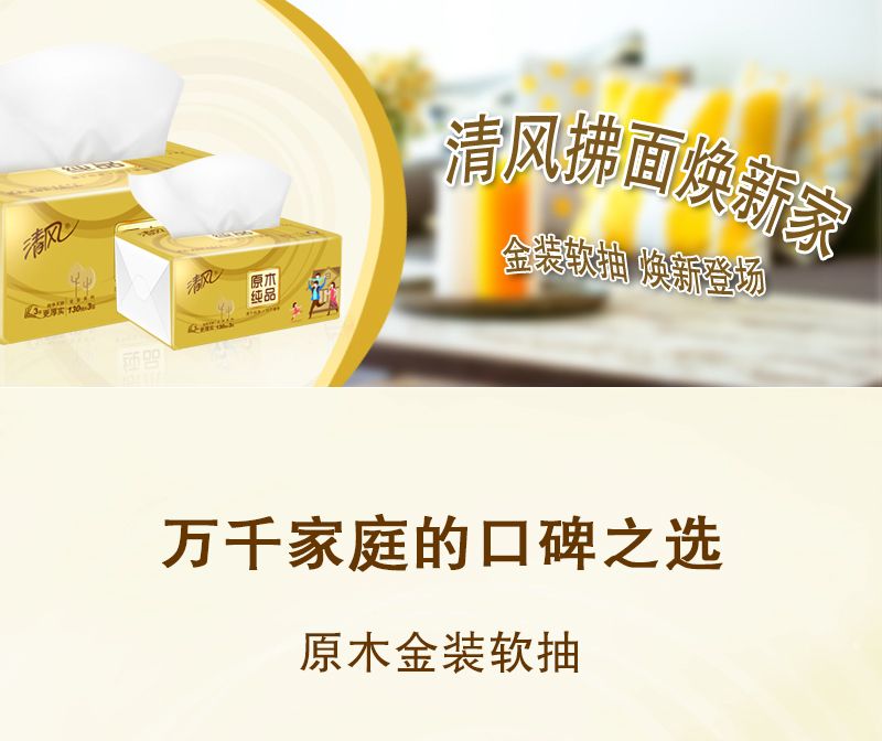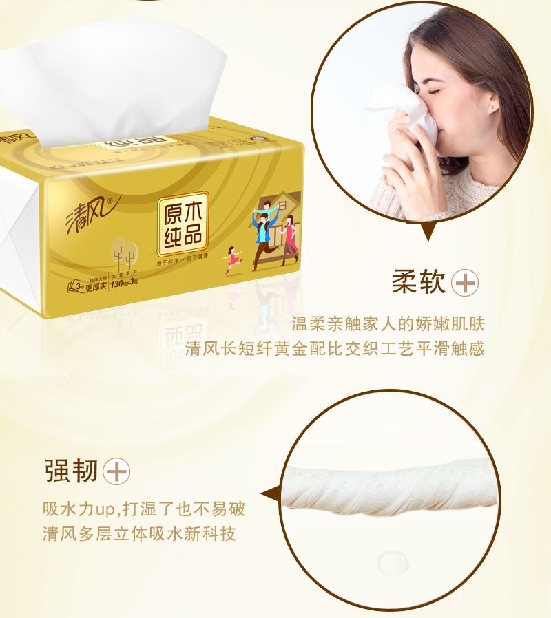 "清风金装抽纸3层130 抽1提4包【BR43AO】"