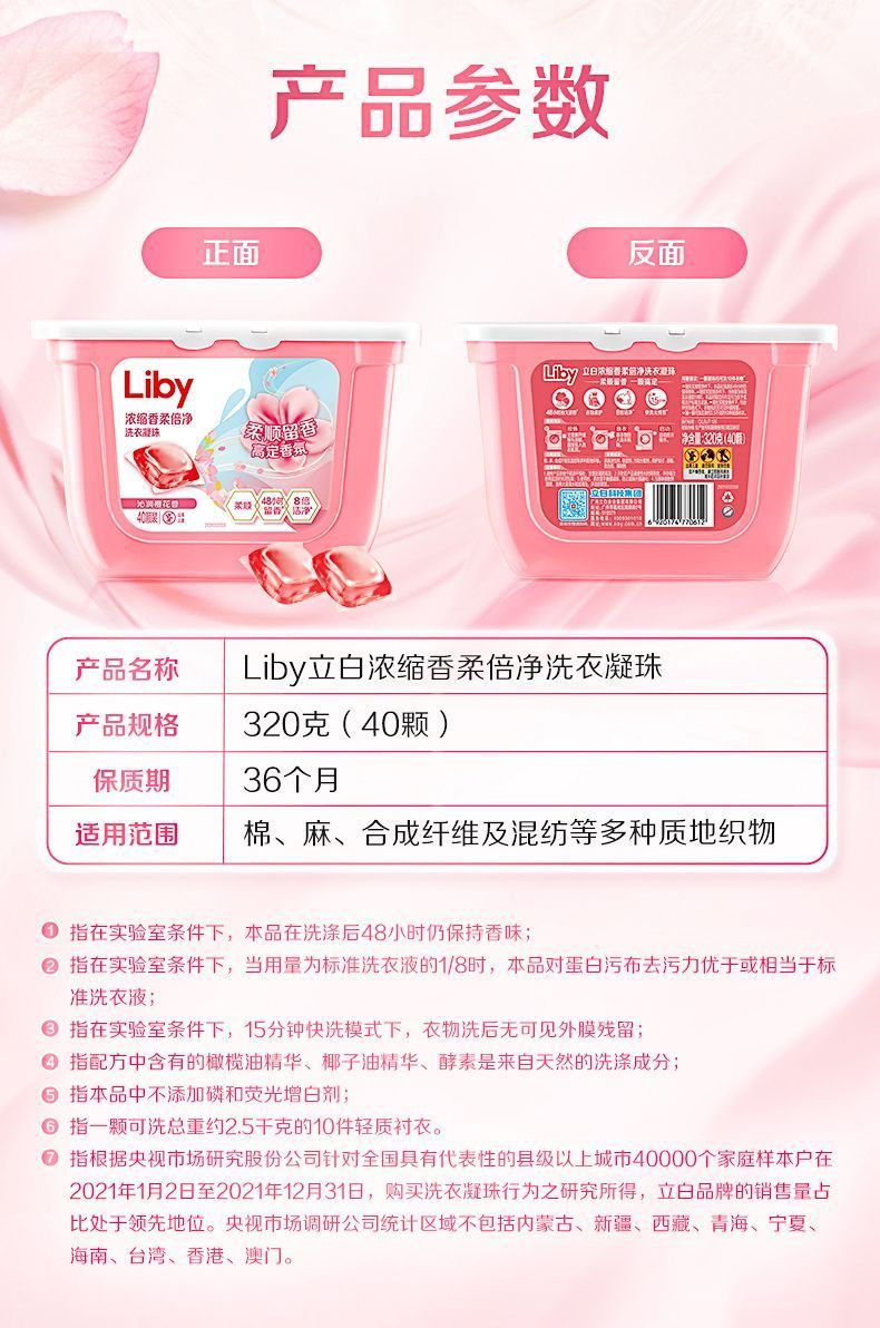 商品名称:立白香柔倍净洗衣凝珠320g*1盒(40颗)
