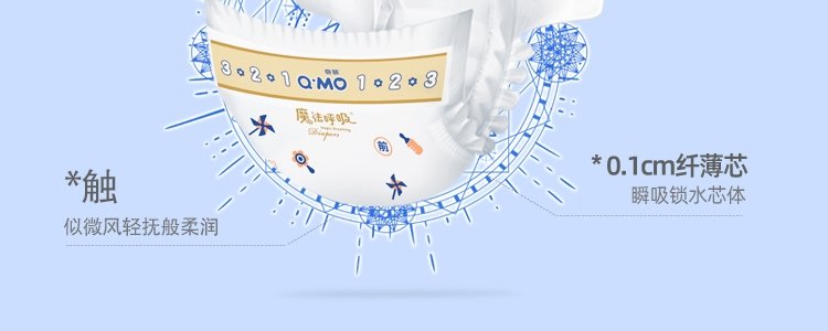 商品名称:奇莫(QMO)魔法呼吸轻薄纸尿裤 S62(4-8kg)新旧包装随机