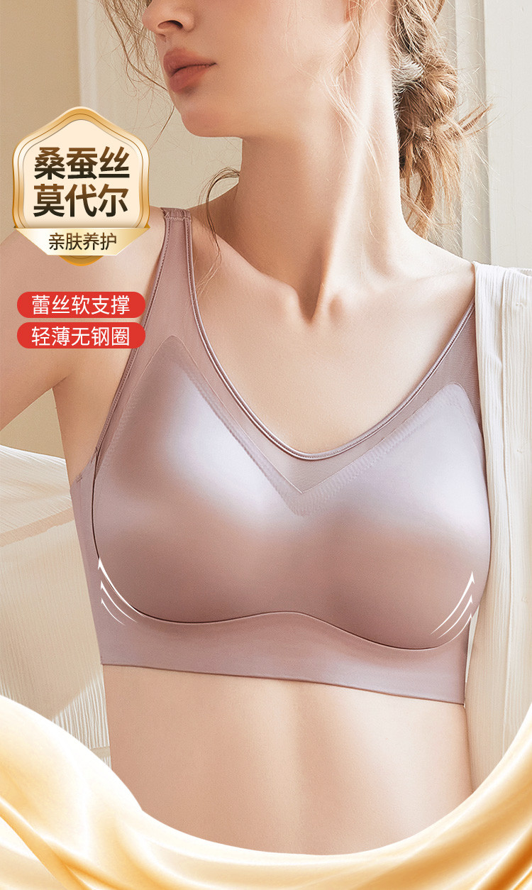 【聚拢防下垂】无痕光面蕾丝拼接内衣女透气提拉聚拢无钢圈文胸罩 579230