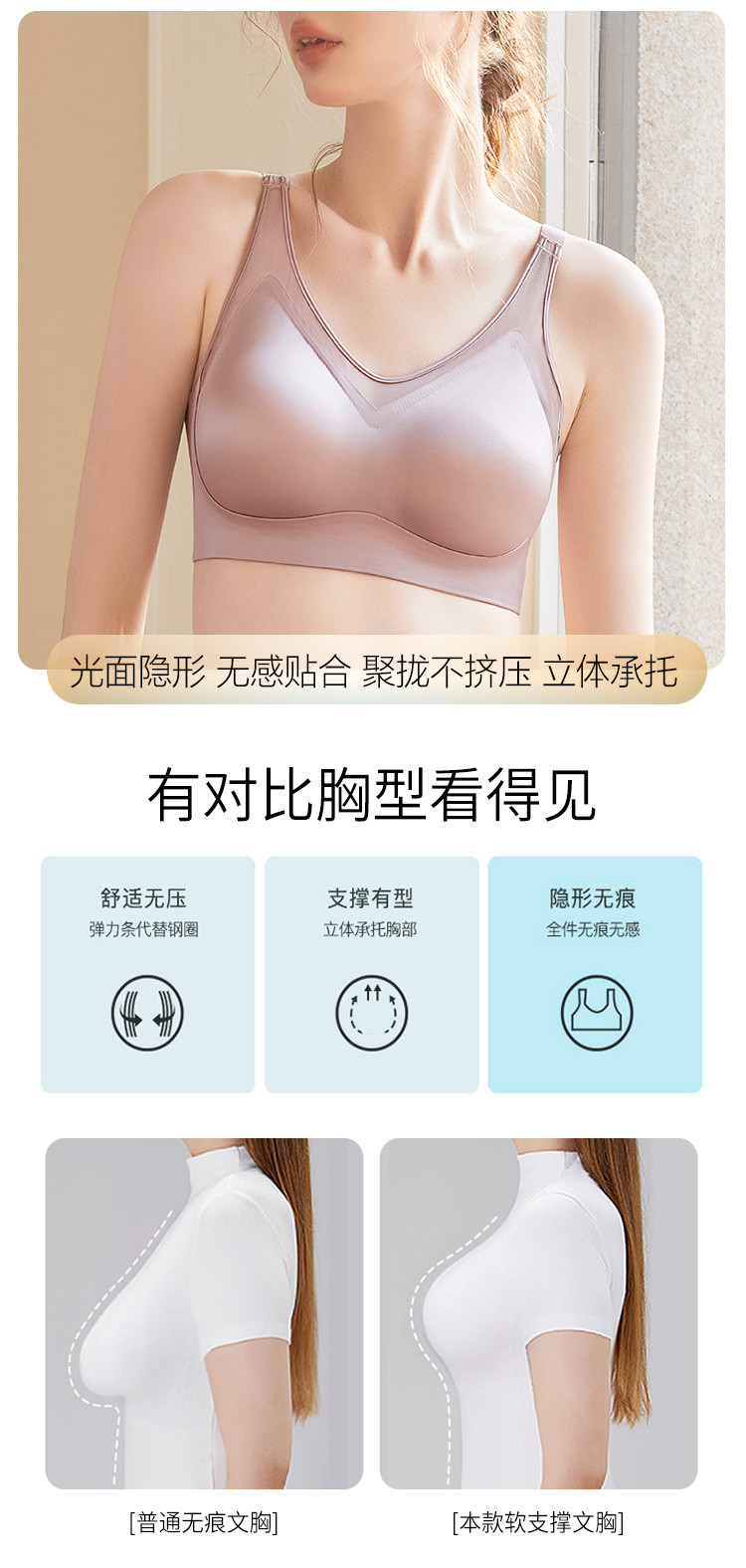 商品名称:【聚拢防下垂】无痕光面蕾丝拼接内衣女透气提拉聚拢无钢圈文胸罩 579230
