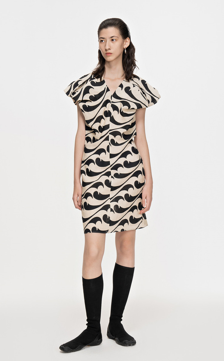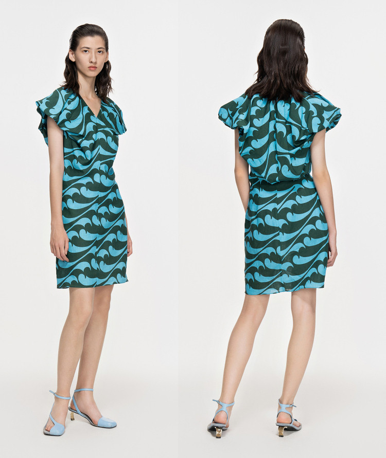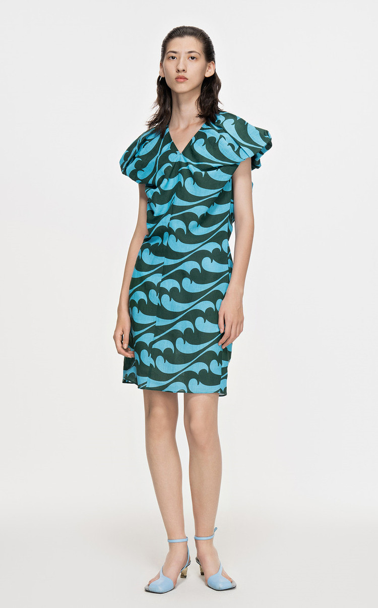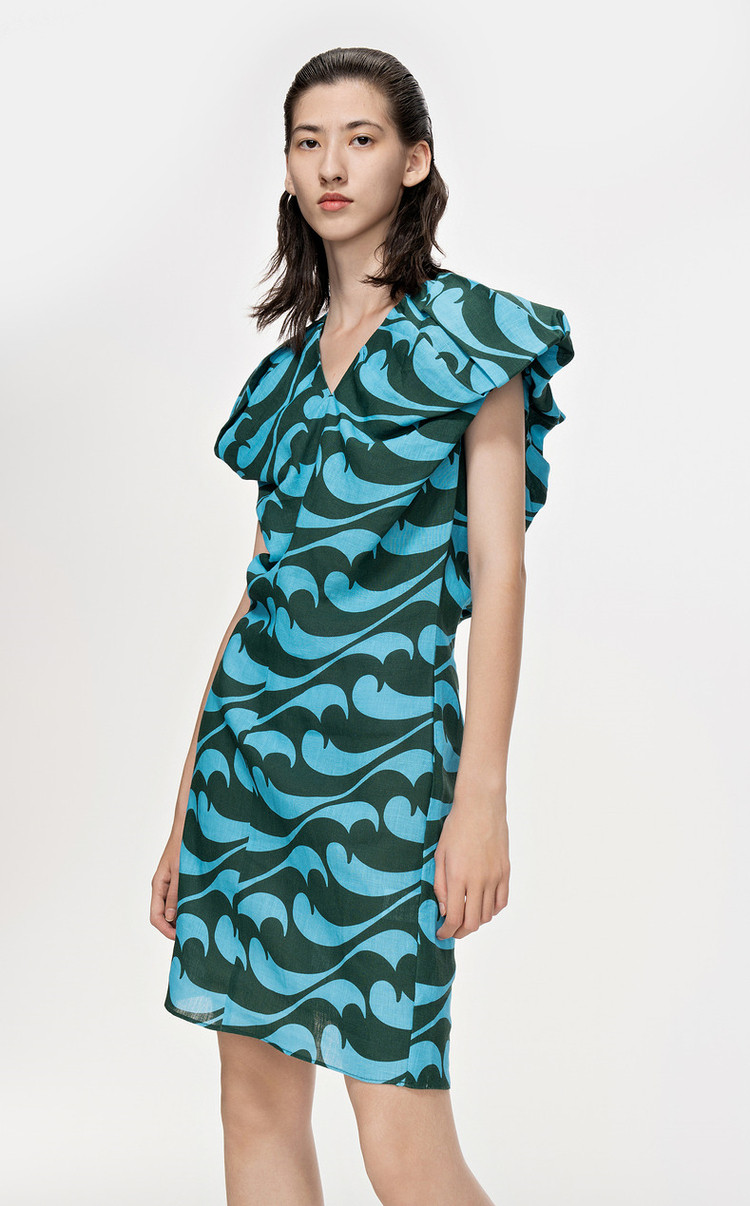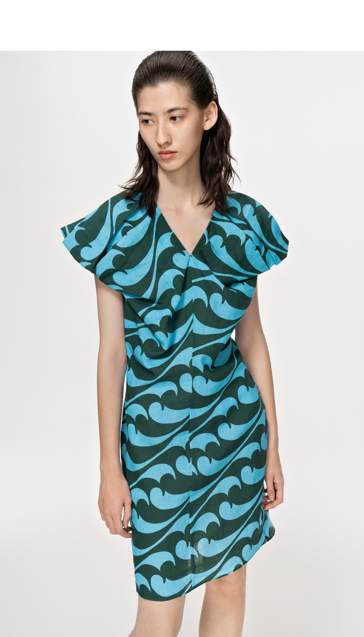 夏连衣裙亚麻印花V领裙装女 943819