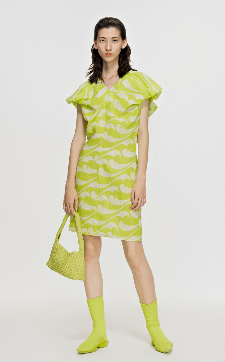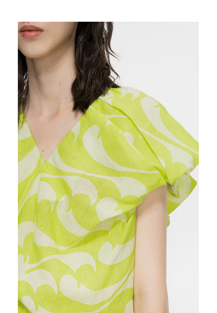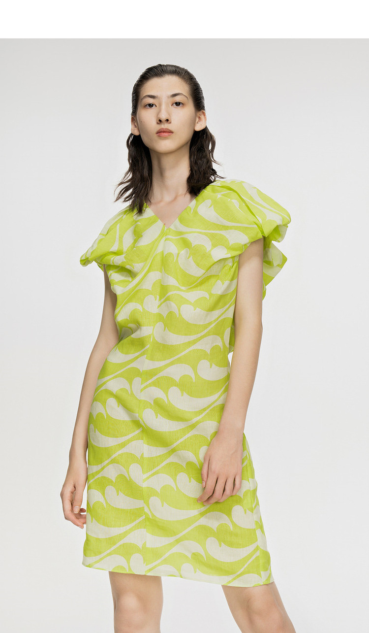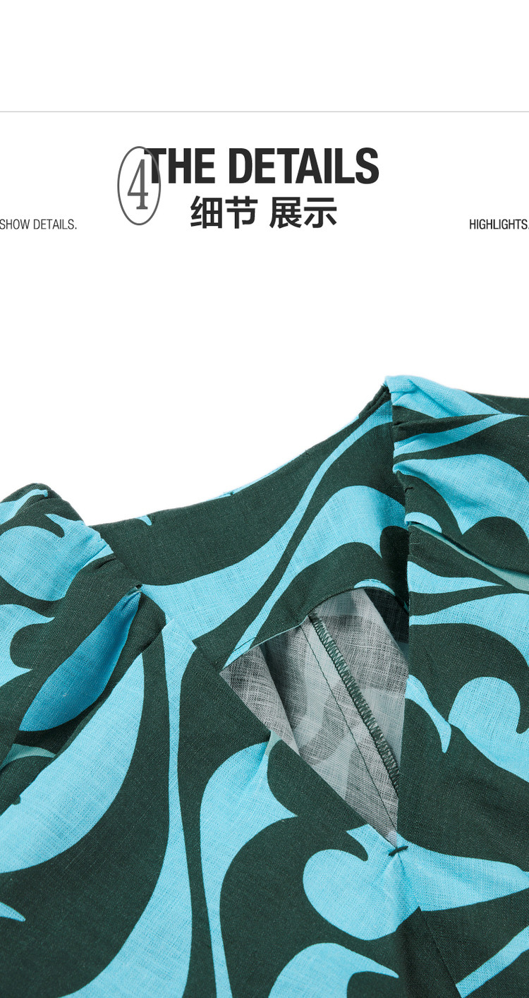 商品名称:夏连衣裙亚麻印花V领裙装女 943819