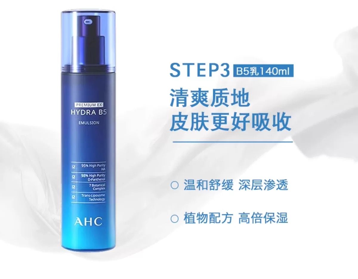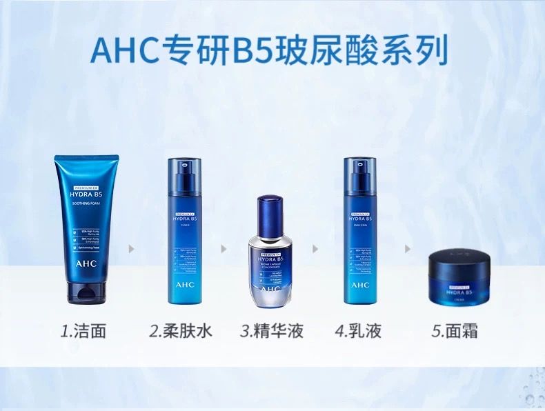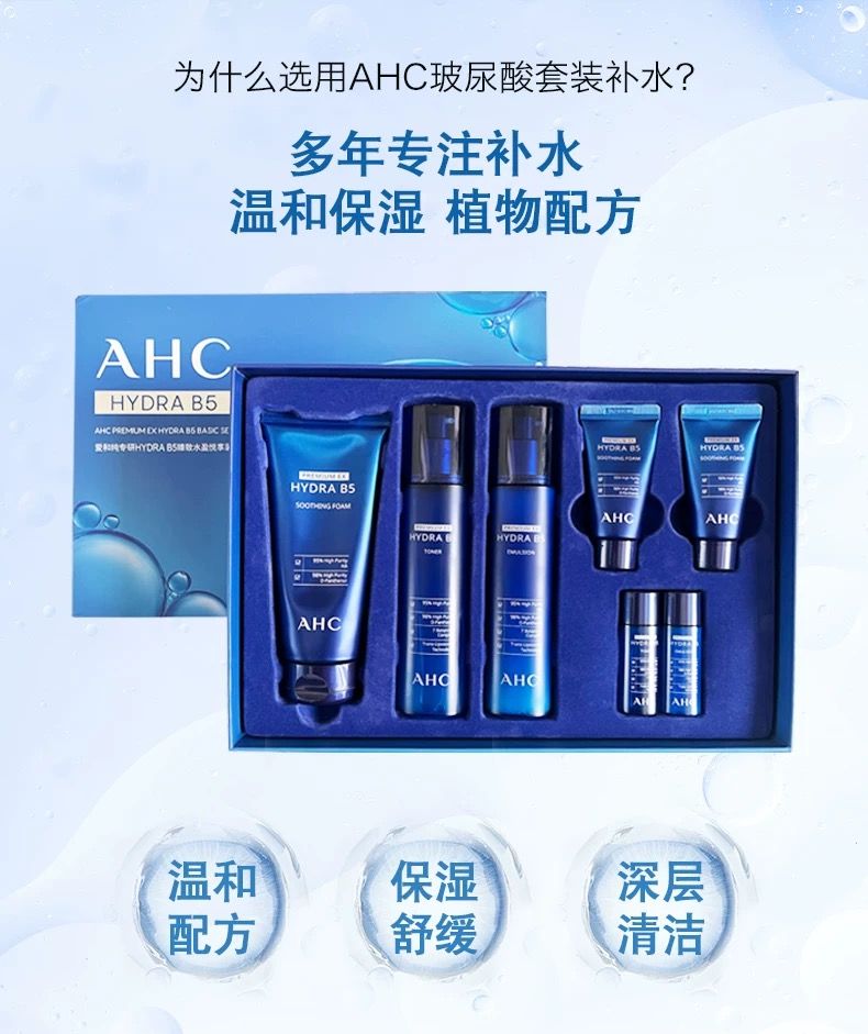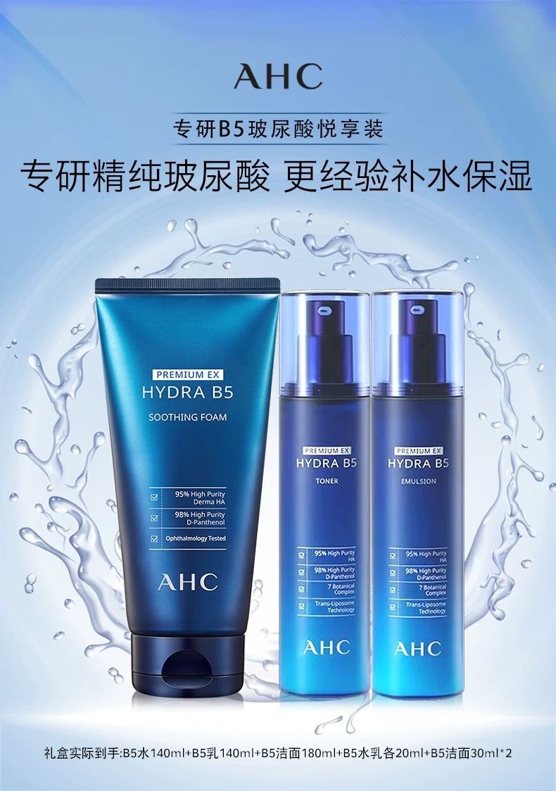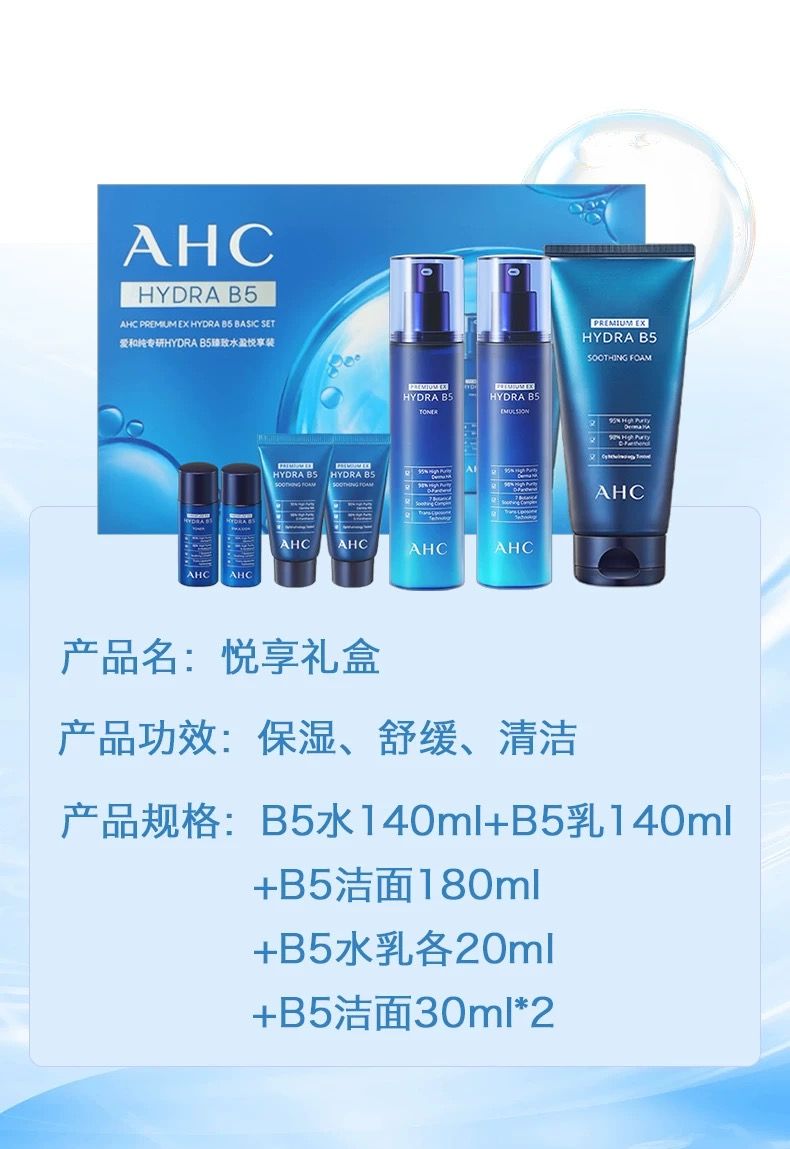 商品名称:AHC/爱和纯 B5臻致水盈悦享7件套盒 洁面180ml+30ml*2+水140ml+20ml+乳液140ml+20ml