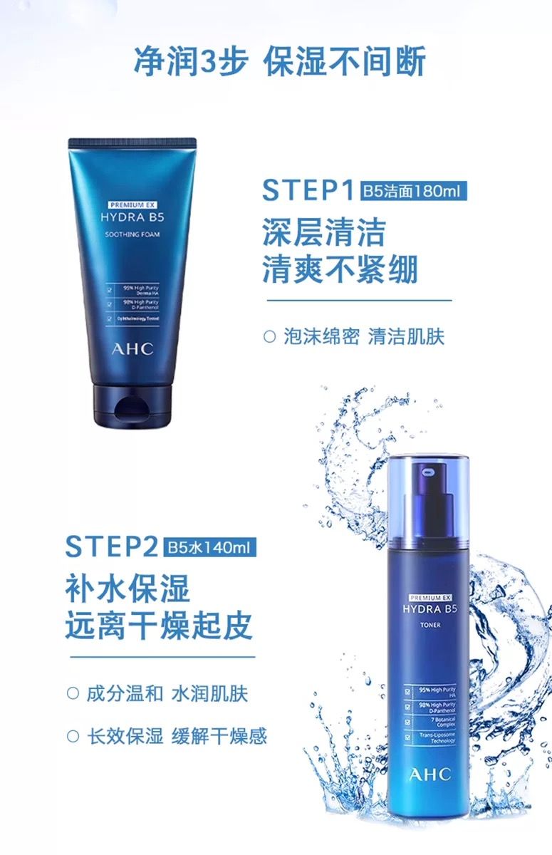 AHC/爱和纯 B5臻致水盈悦享7件套盒 洁面180ml+30ml*2+水140ml+20ml+乳液140ml+20ml