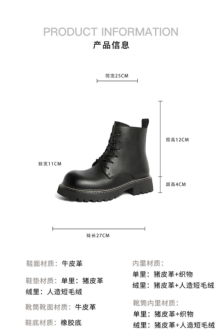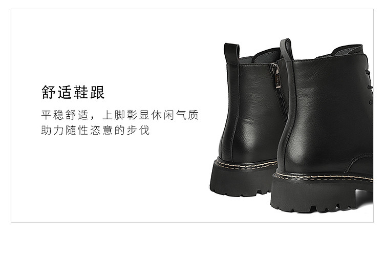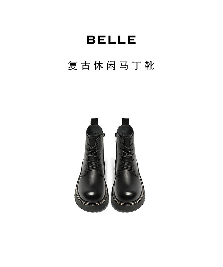 商品名称:百丽女鞋子黑色马丁靴女靴子冬季牛皮侧拉链短靴 374874