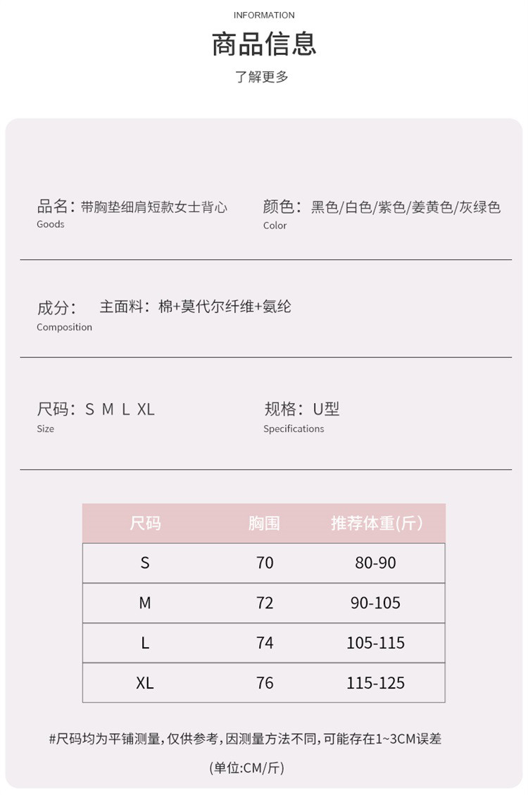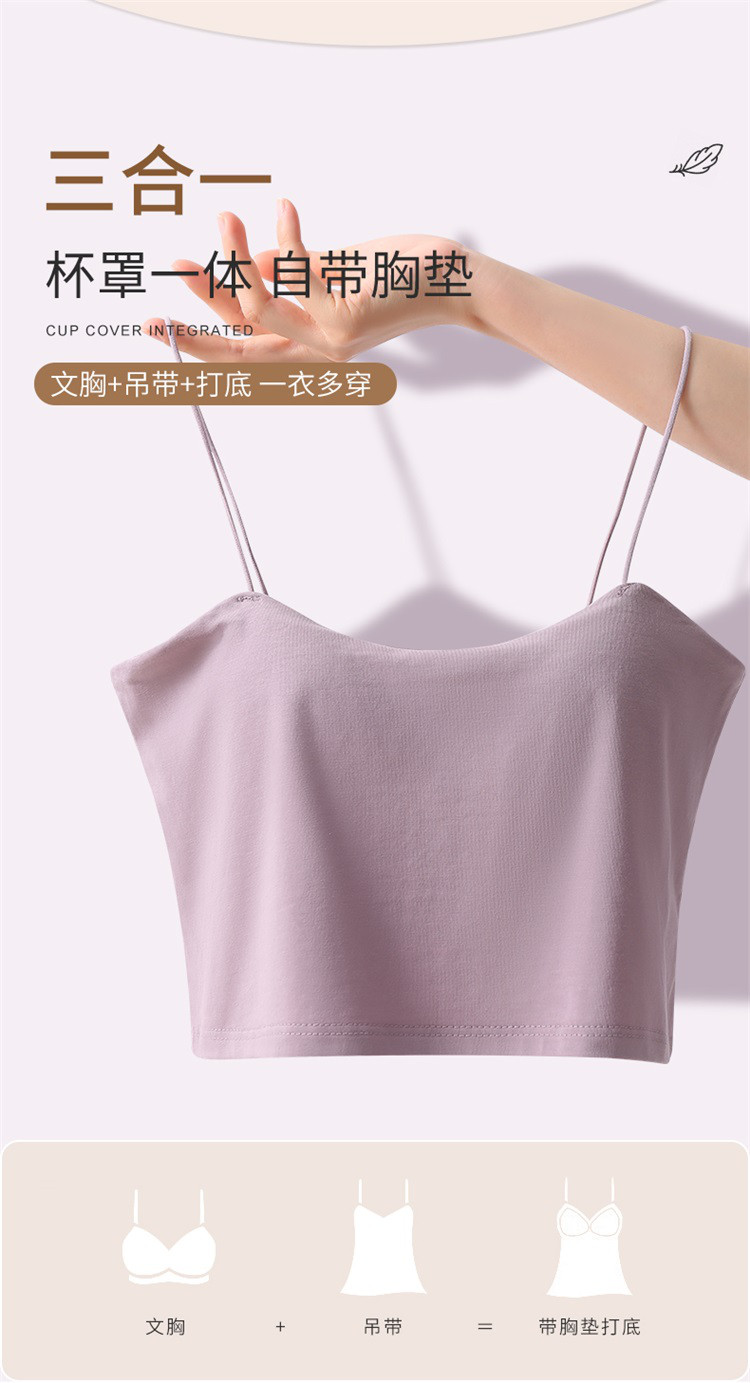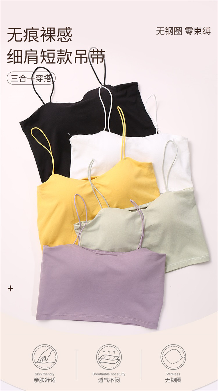 商品名称:莫代尔女士夏季一体式时尚无痕美背自带胸垫聚拢可外穿吊带背心女 566622