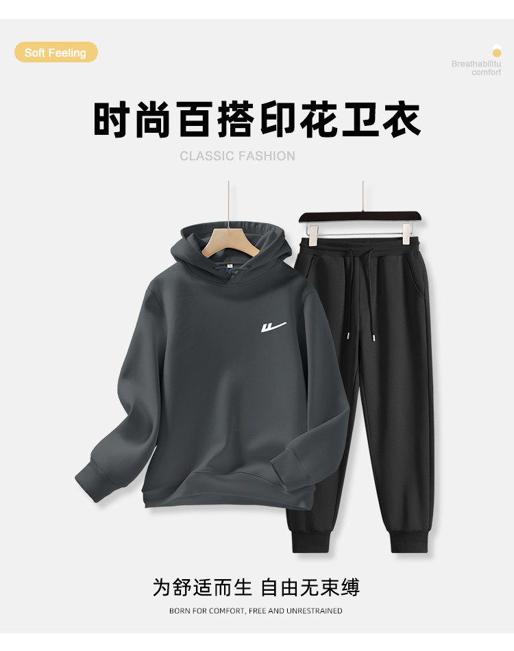 商品名称:【重磅棉】春秋连帽卫衣+束脚卫裤两件套跑步休闲男士运动套装男 586195