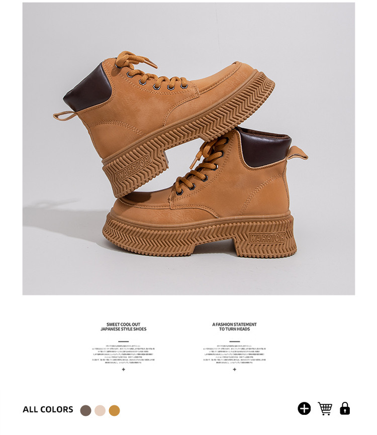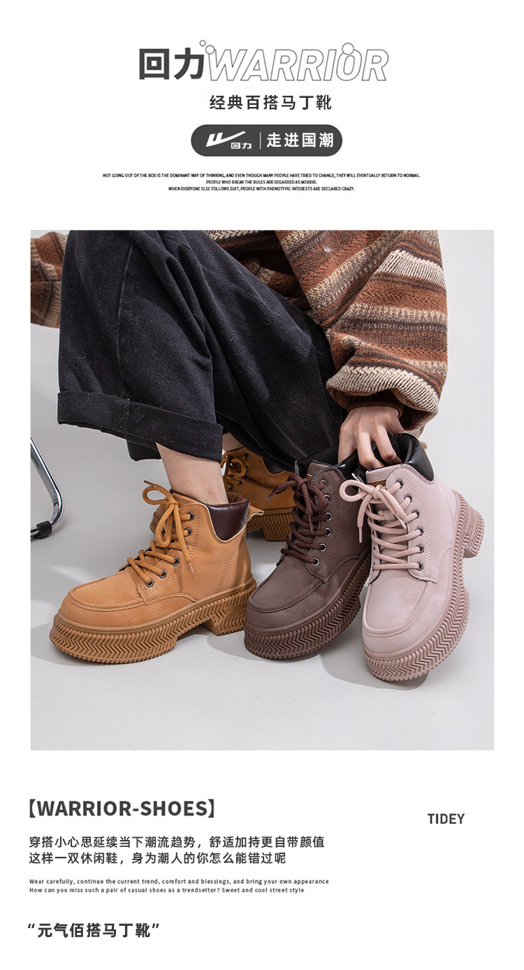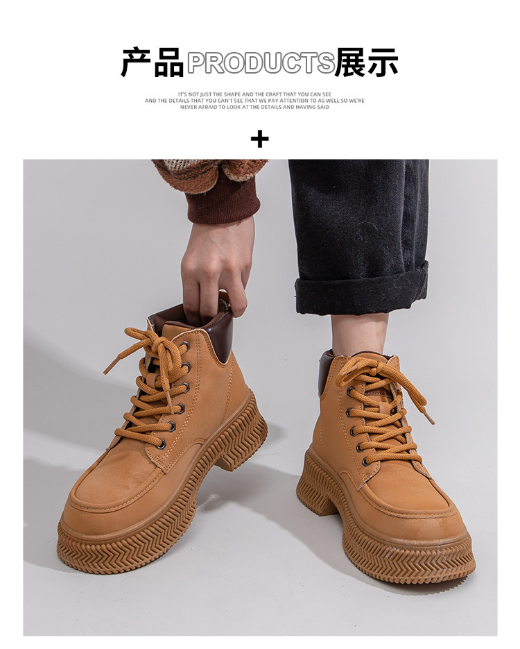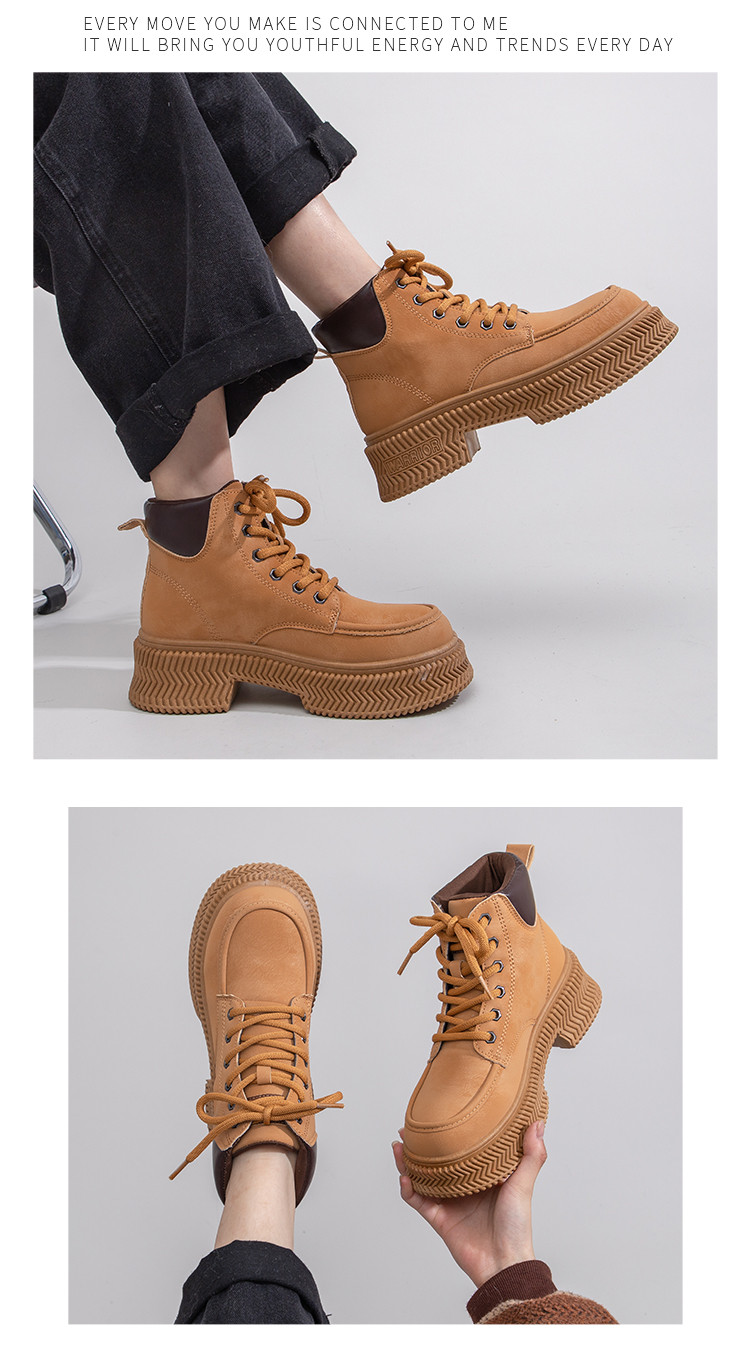 商品名称:马丁靴女2025夏季轻便超火爆款靴子厚底户外工装厚底大黄靴子 464520