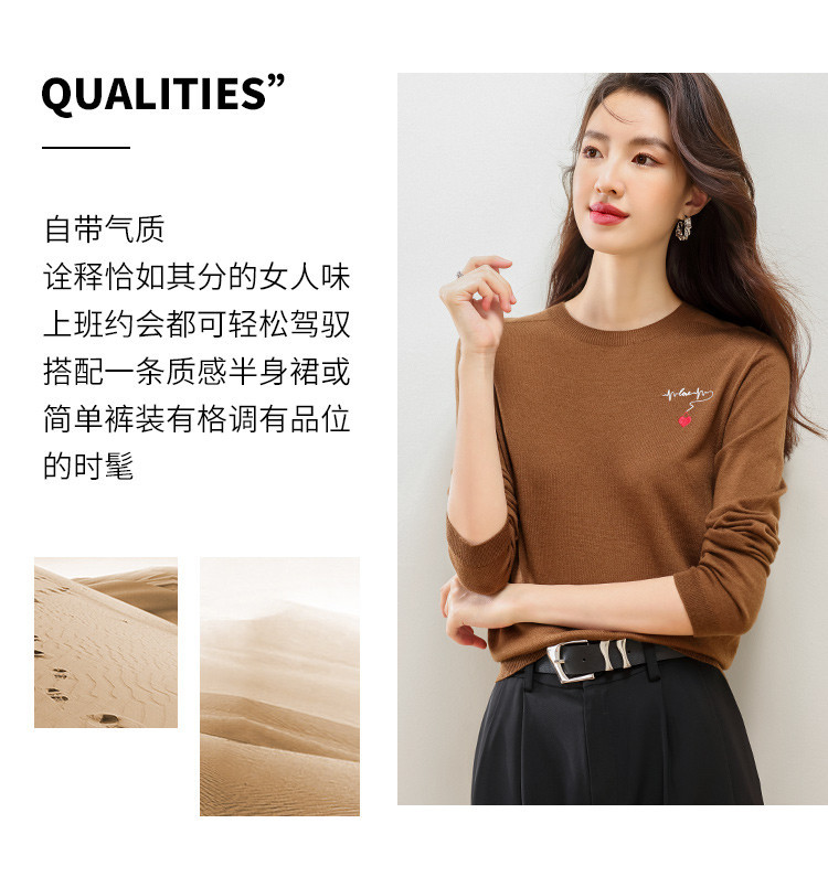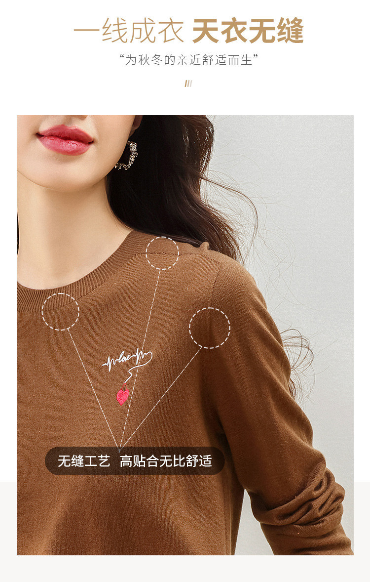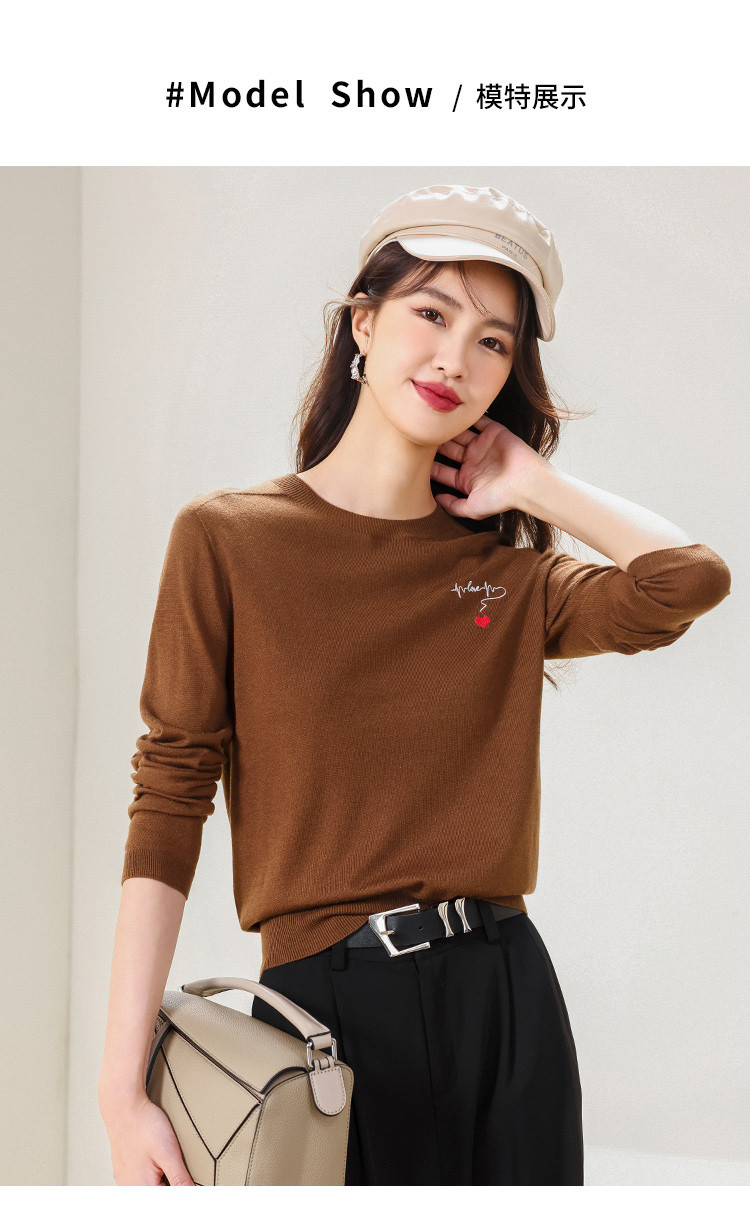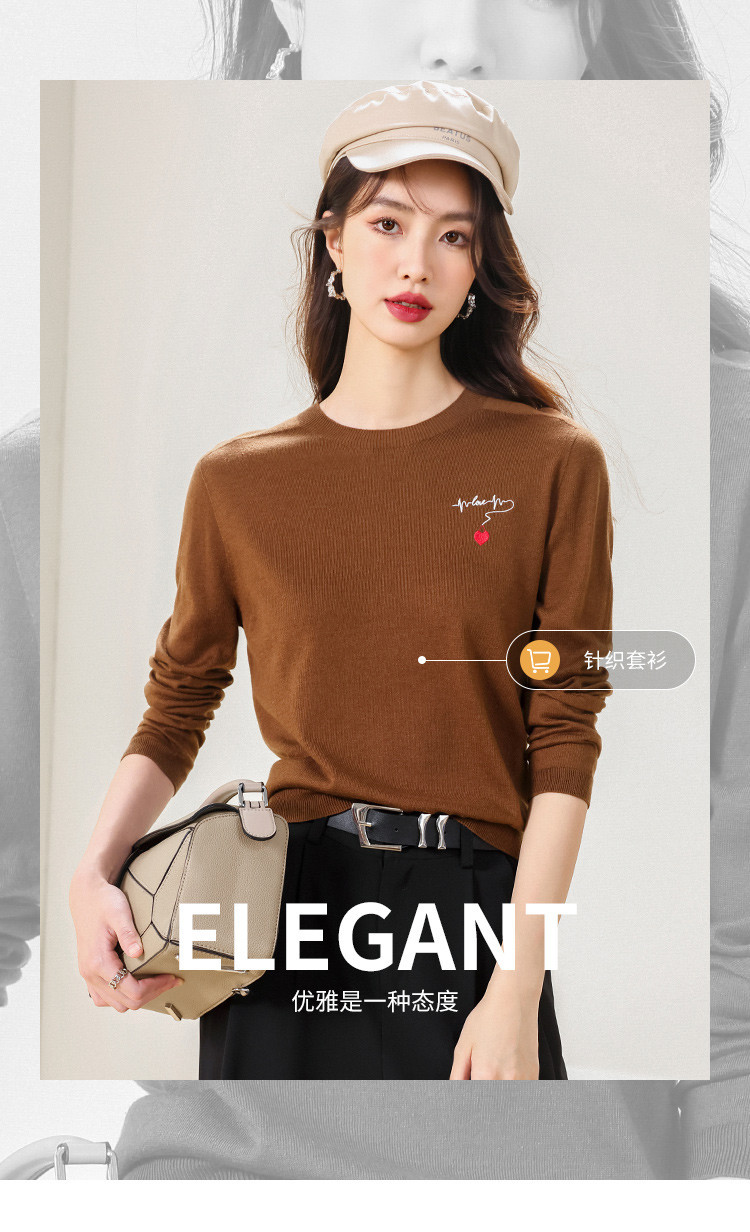 商品名称:【一线成衣】刺绣薄款针织衫含山羊绒含桑蚕丝打底衫T恤毛衣线衫 923603