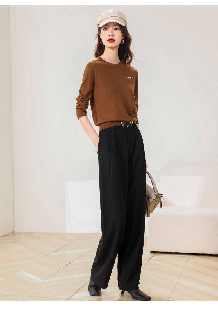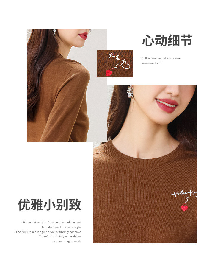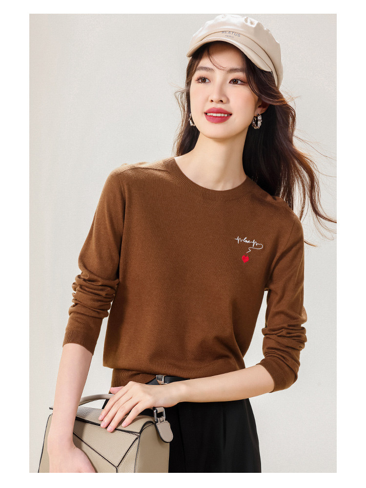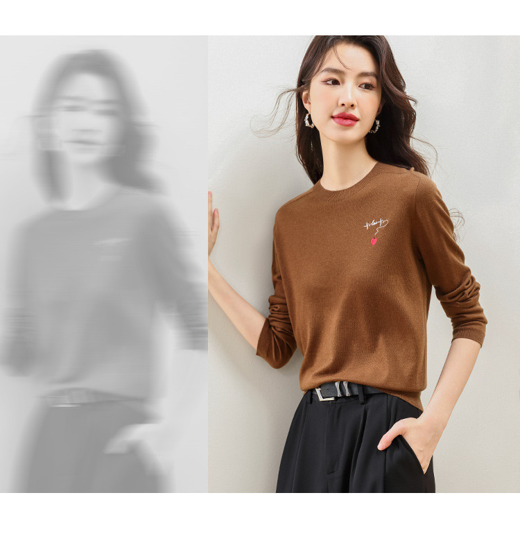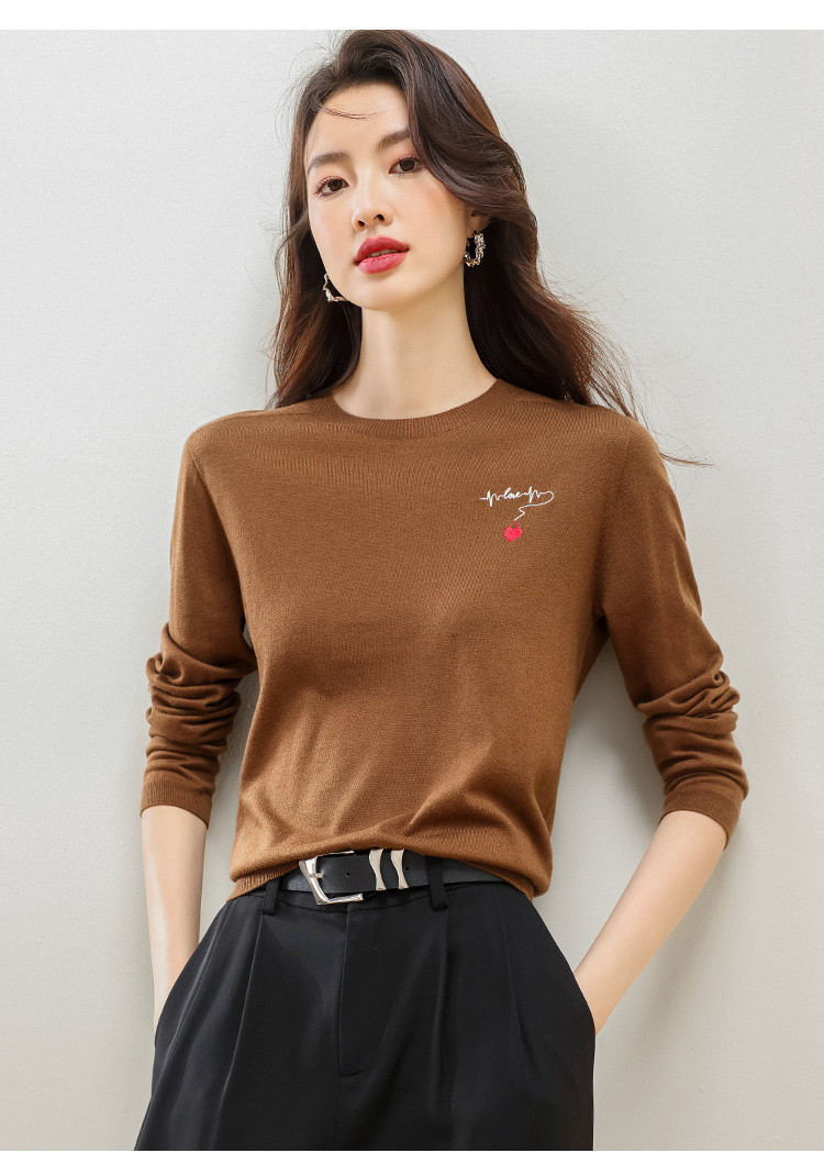 商品名称:【一线成衣】刺绣薄款针织衫含山羊绒含桑蚕丝打底衫T恤毛衣线衫 923603