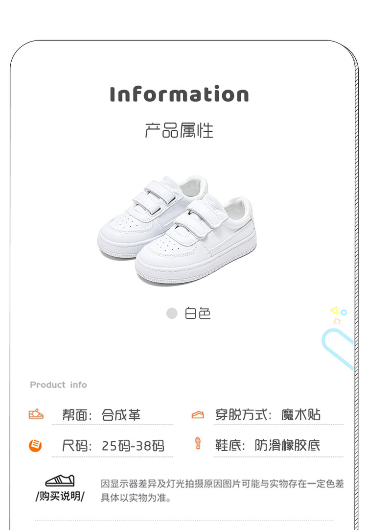 商品名称:【人气热卖】儿童小白鞋百搭春秋板鞋透气中大童小学生表演鞋休闲 638813