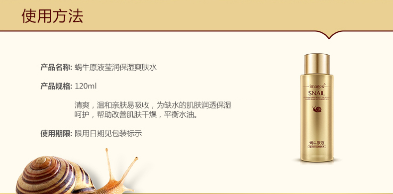 商品名称:形象美蜗牛原液莹润保湿爽肤水 120ml*2瓶