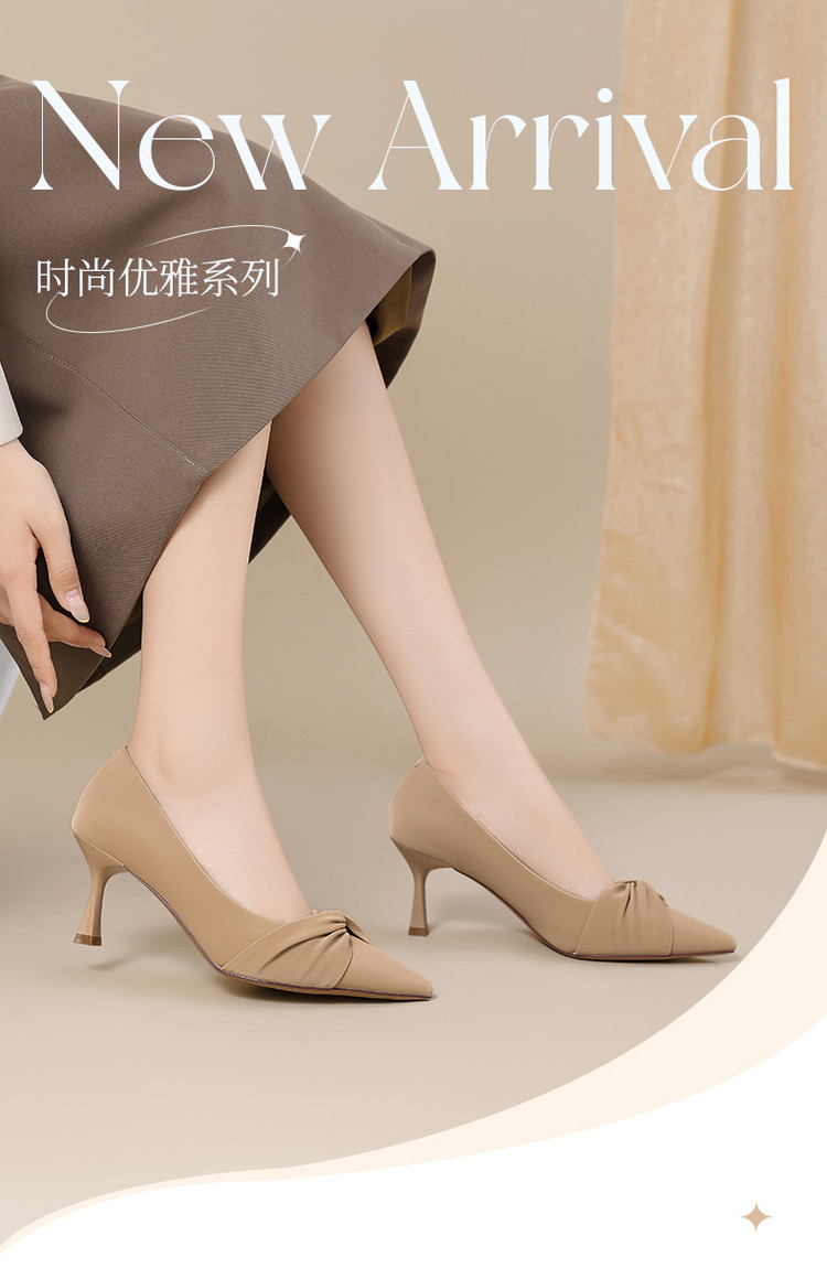 春秋尖头温柔浅口高跟鞋细跟小个子法式气质女单鞋通勤百搭女鞋 262106