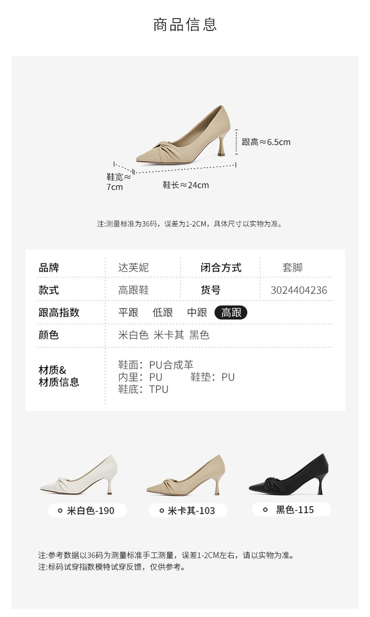 商品名称:春秋尖头温柔浅口高跟鞋细跟小个子法式气质女单鞋通勤百搭女鞋 262106
