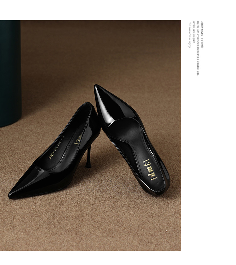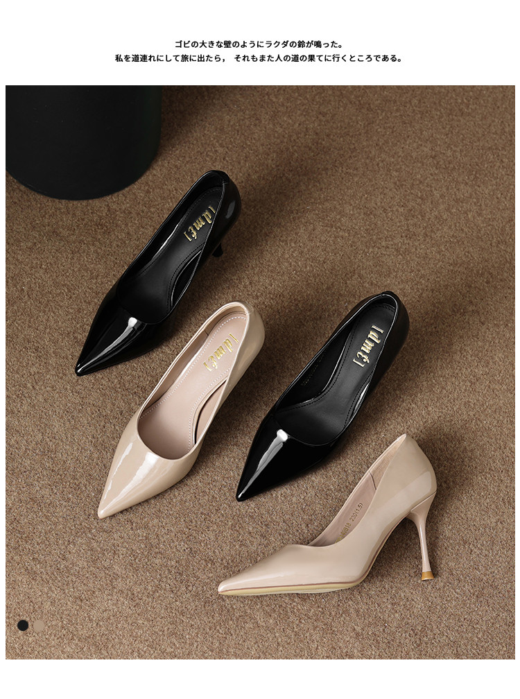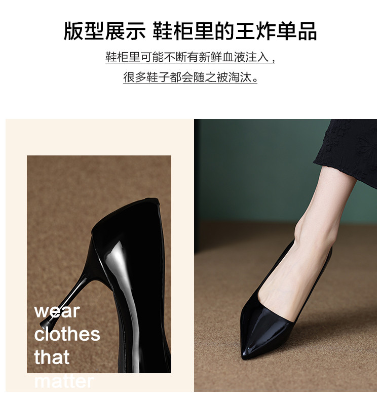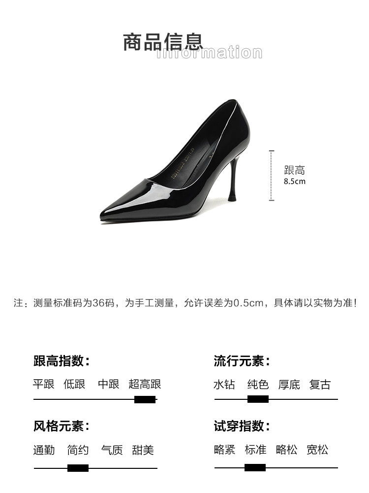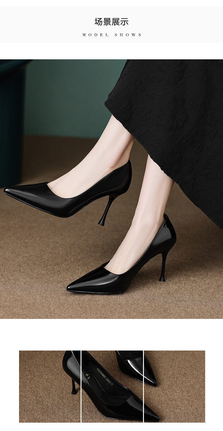 商品名称:2024秋季简约百搭温柔气质高级感纯色镜面显高女高跟鞋女单鞋 337601