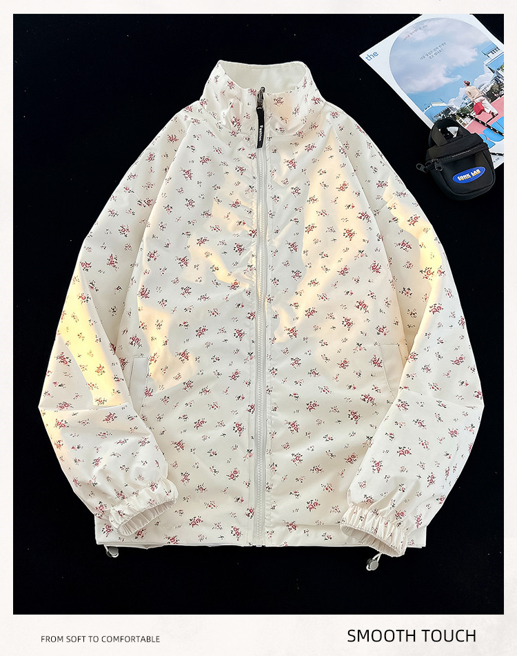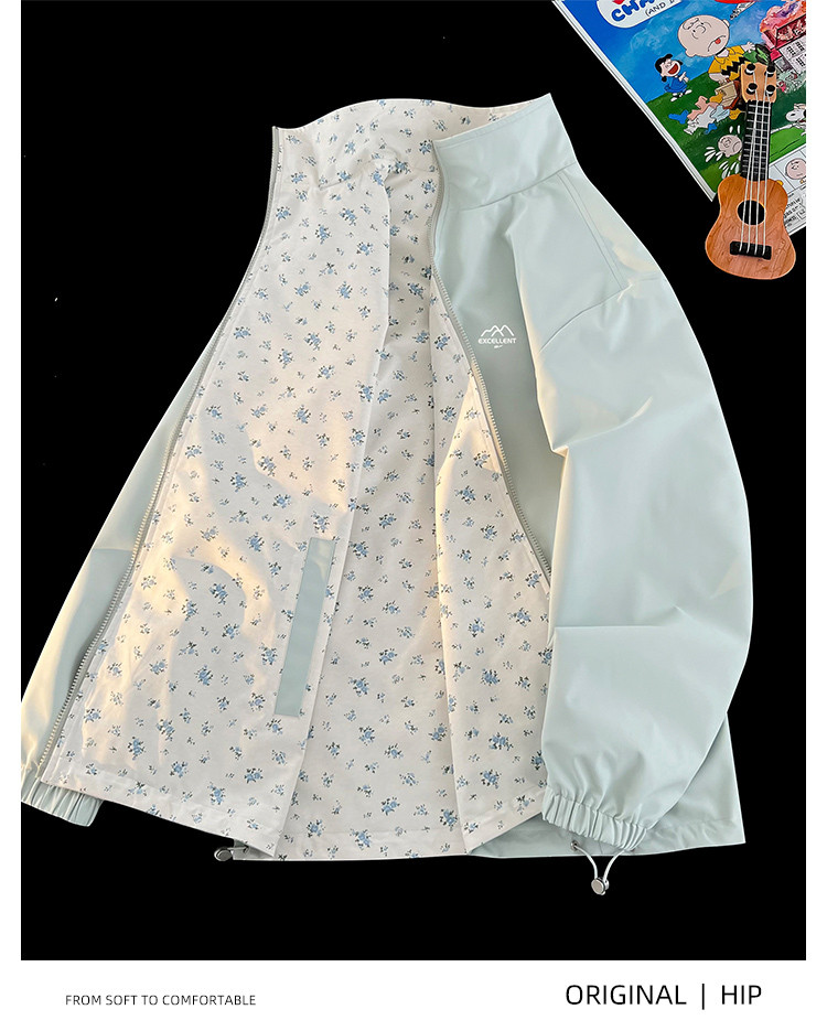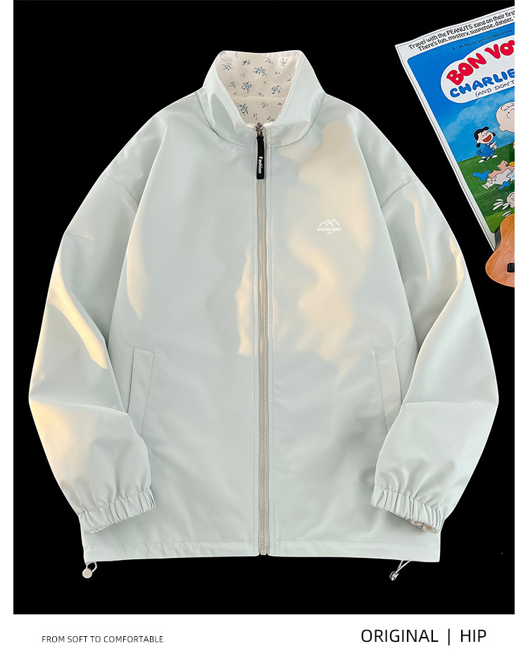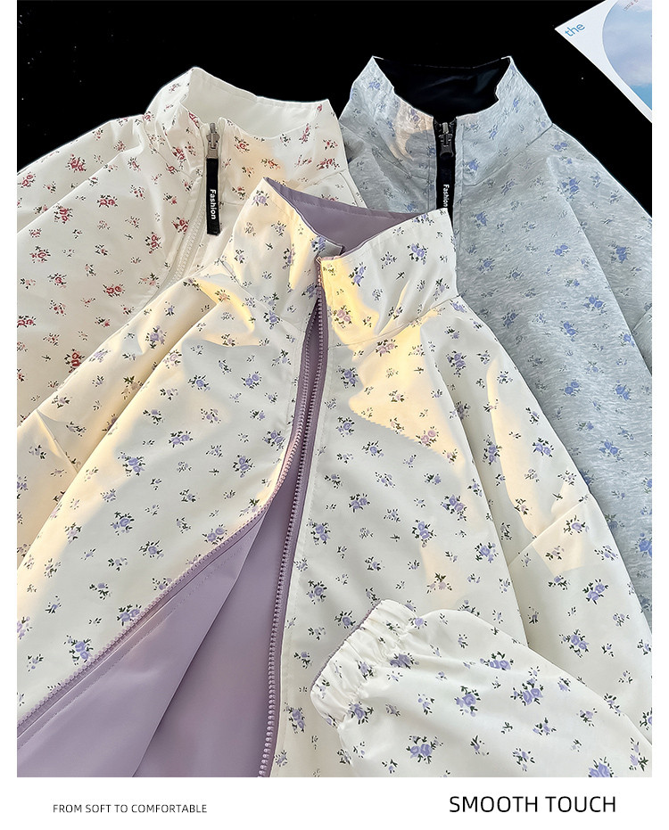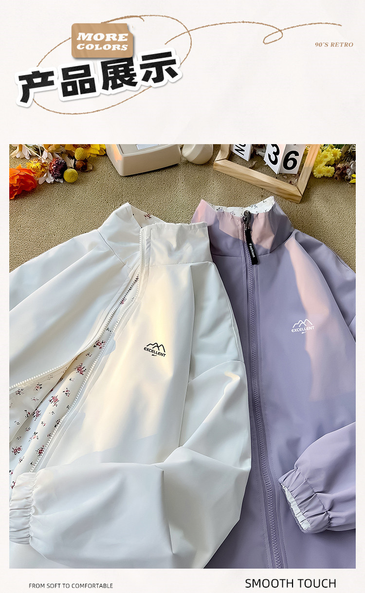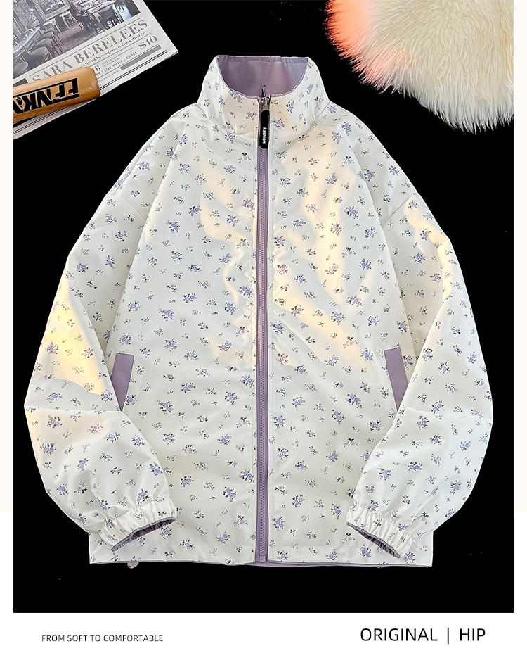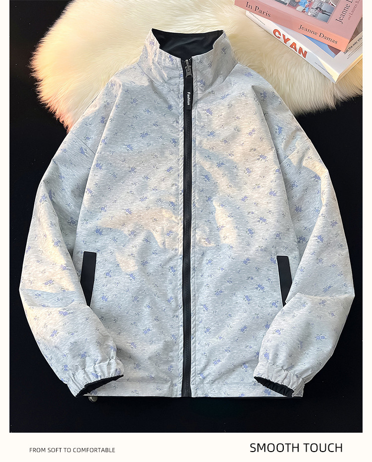 商品名称:【碎花双面穿】立领外套女春秋季运动休闲宽松情侣款夹克 917971
