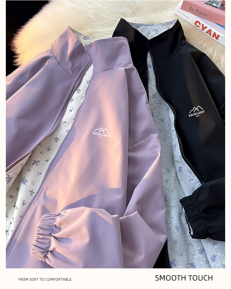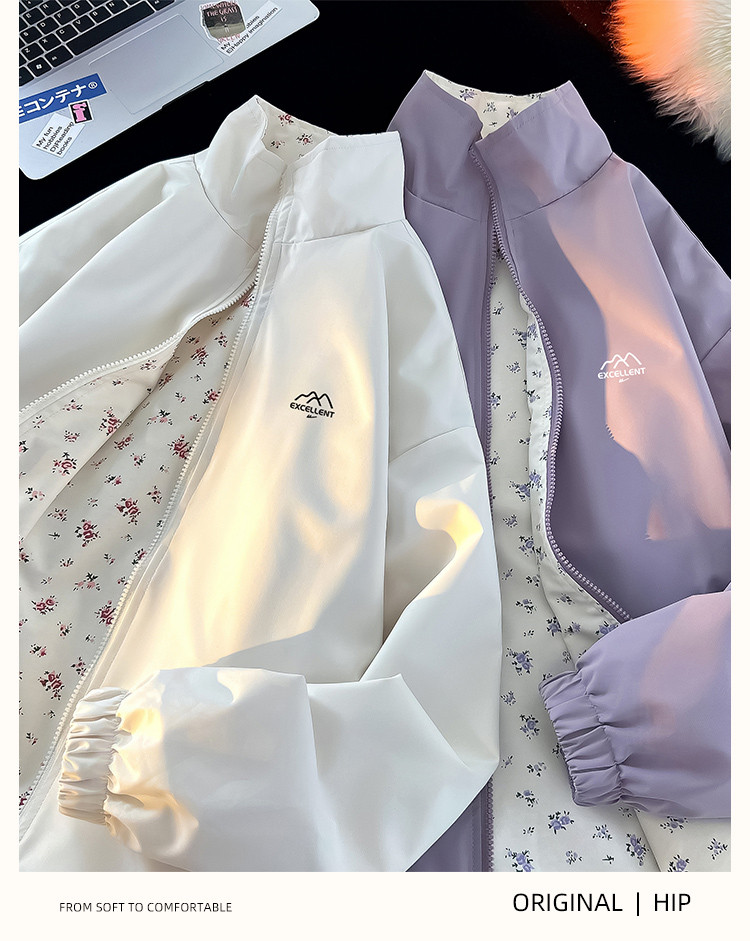 【碎花双面穿】立领外套女春秋季运动休闲宽松情侣款夹克 917971