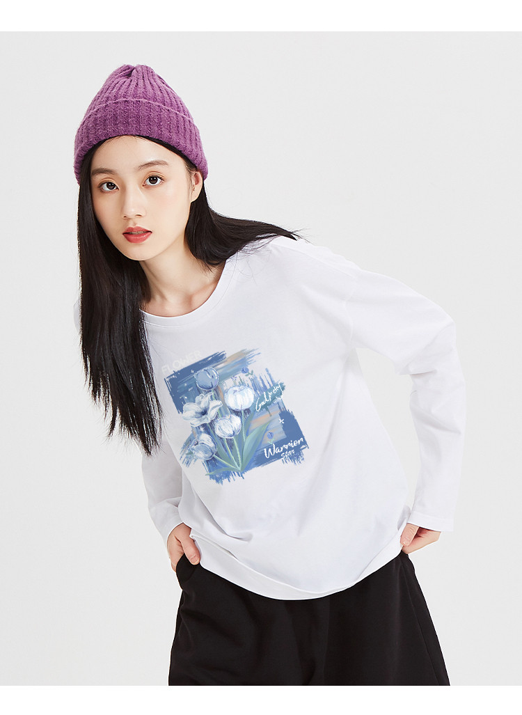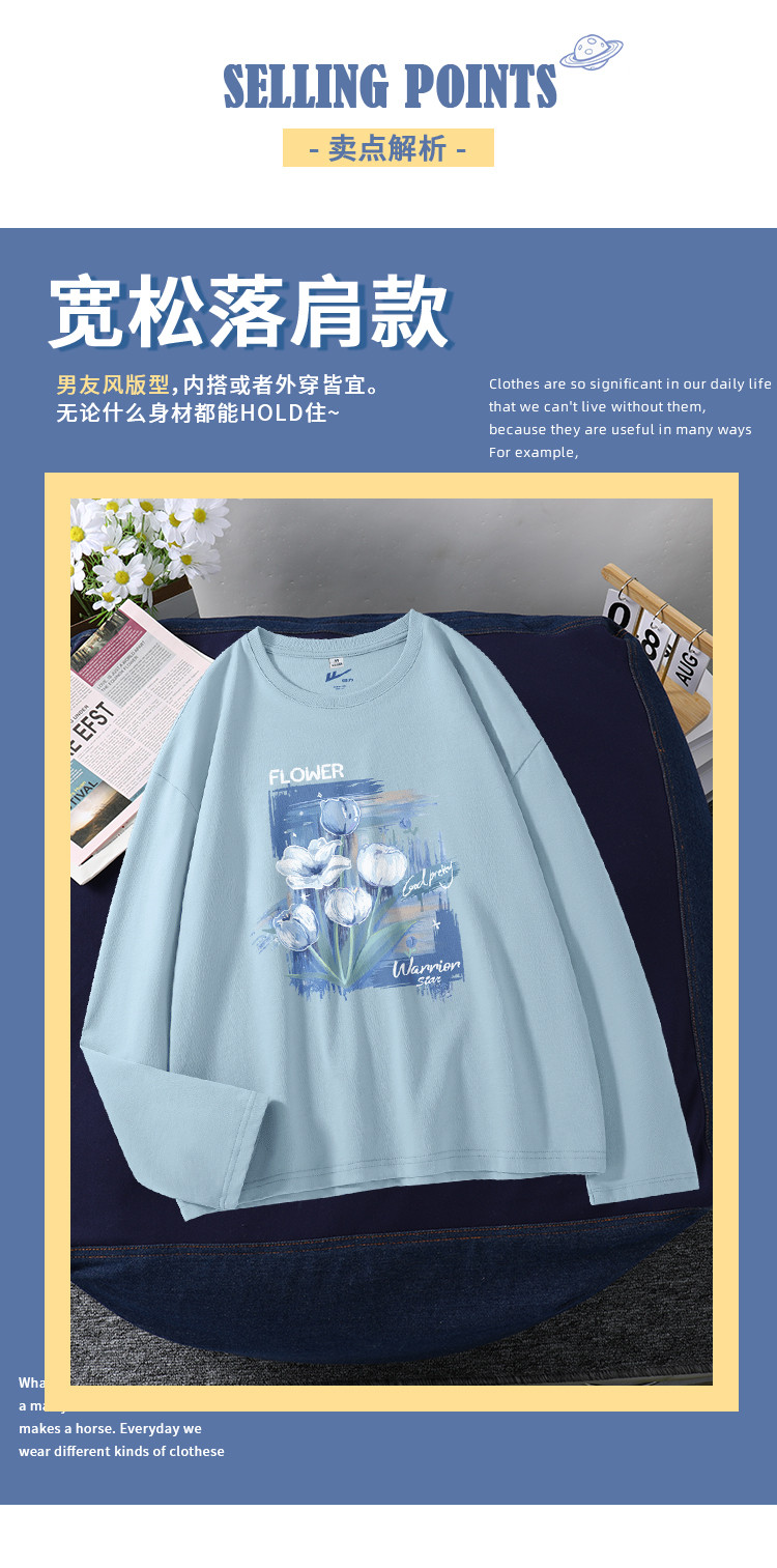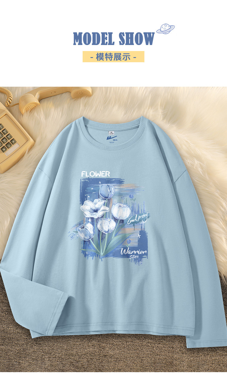 商品名称:【女装重磅棉】春秋纯棉长袖T恤女宽松显瘦休闲百搭打底上衣女 602387