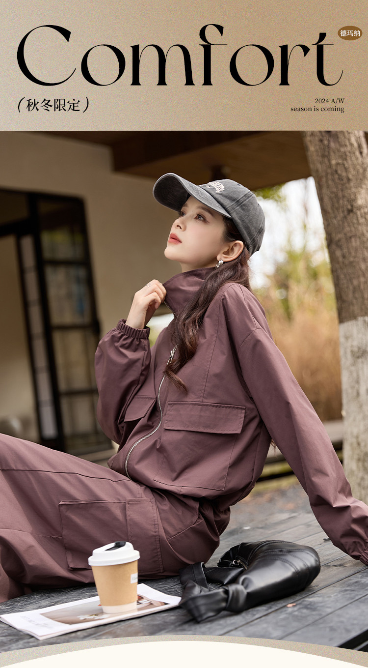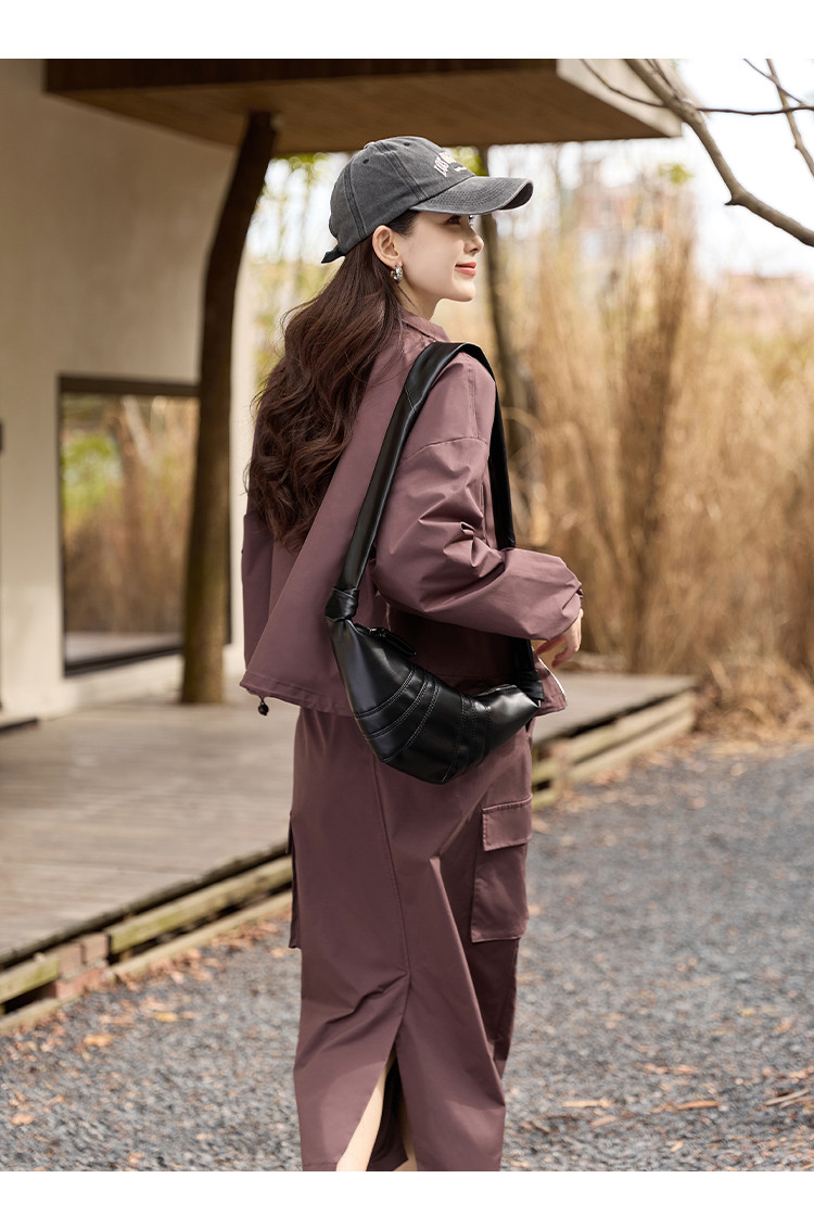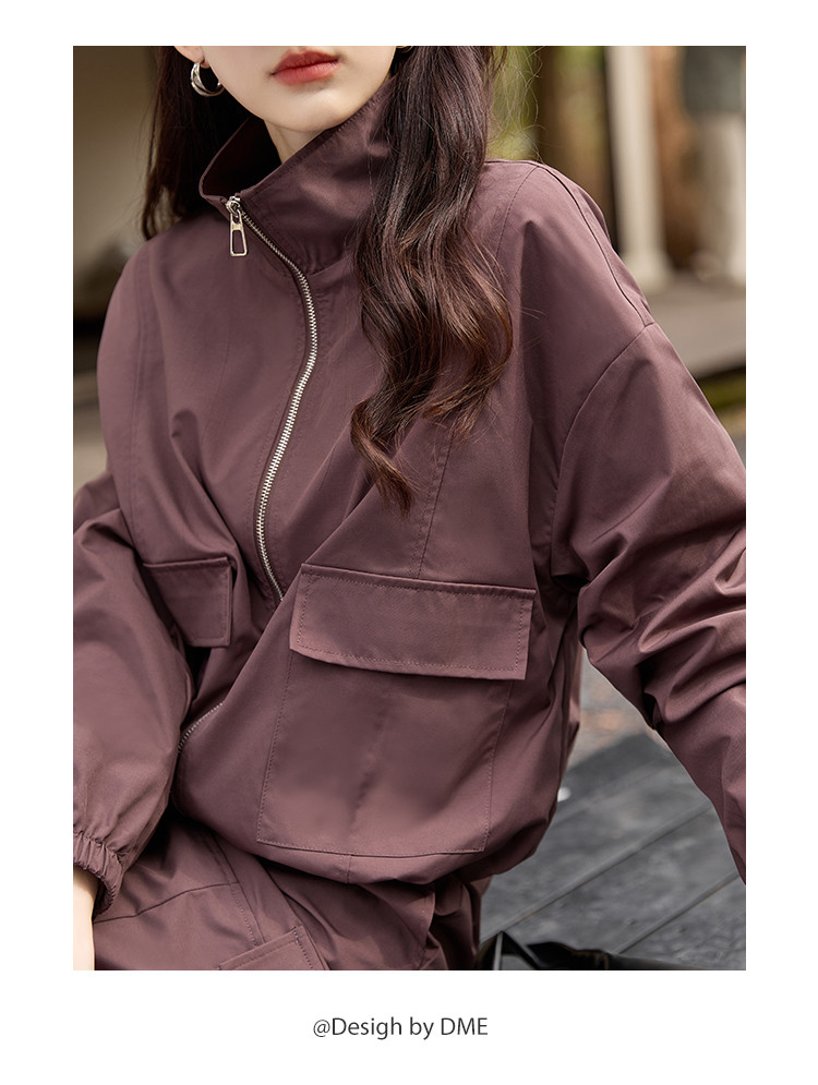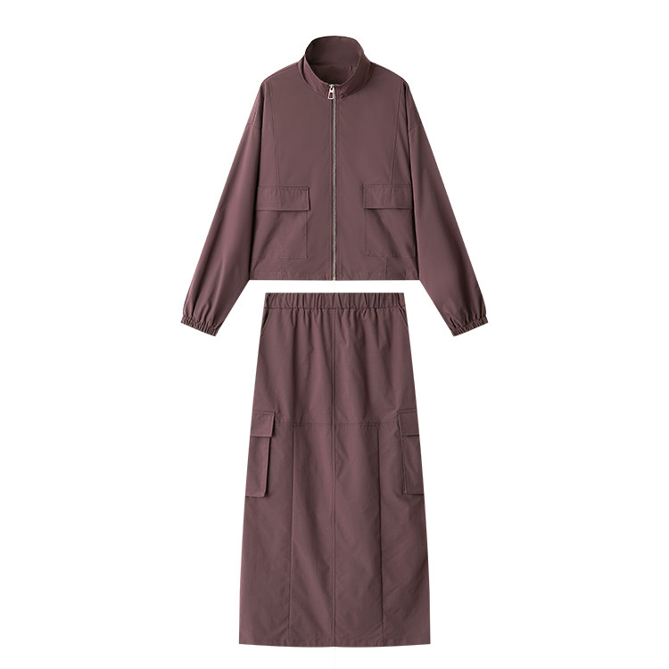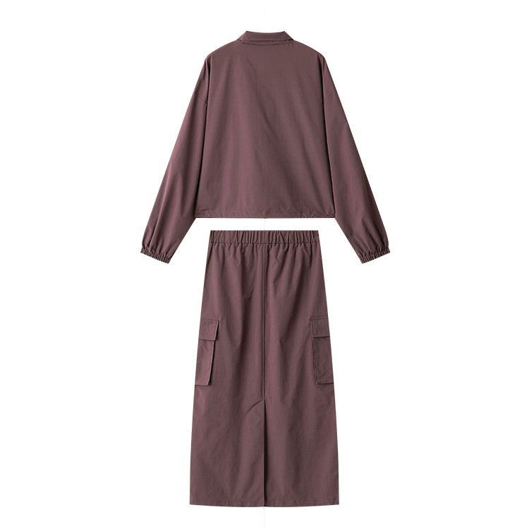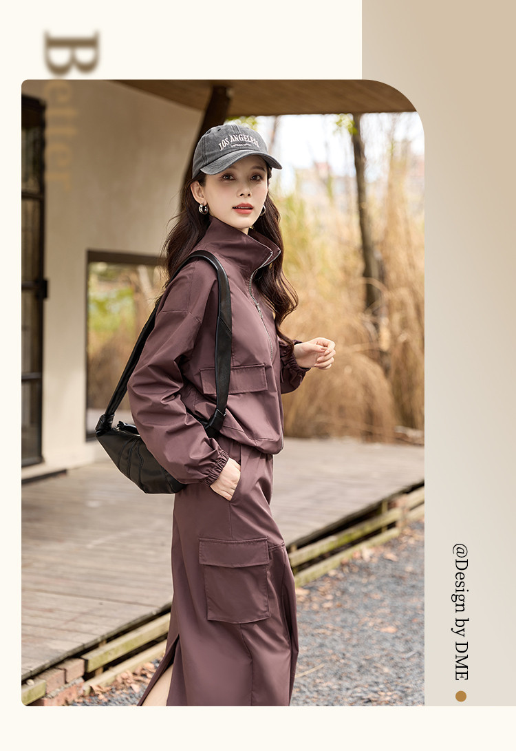 商品名称:【又A又飒】工装风立领夹克休闲半裙两件套后开叉修身女式套装 189953