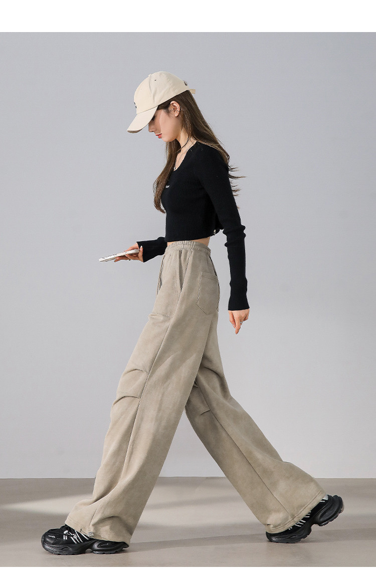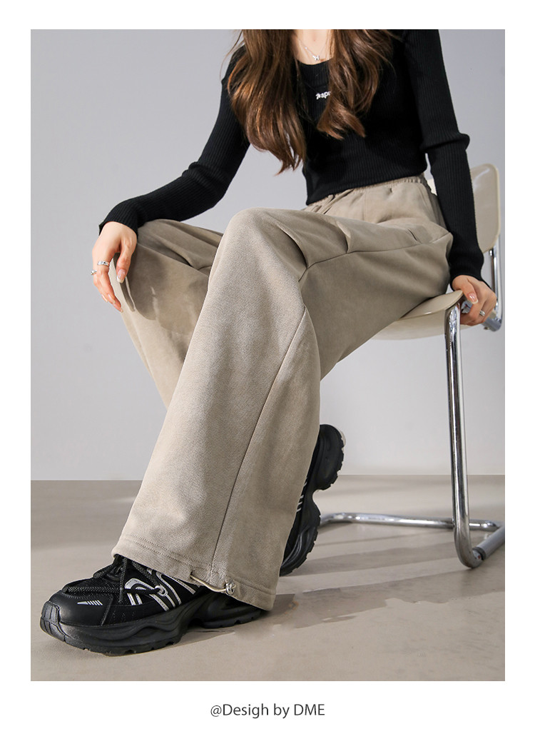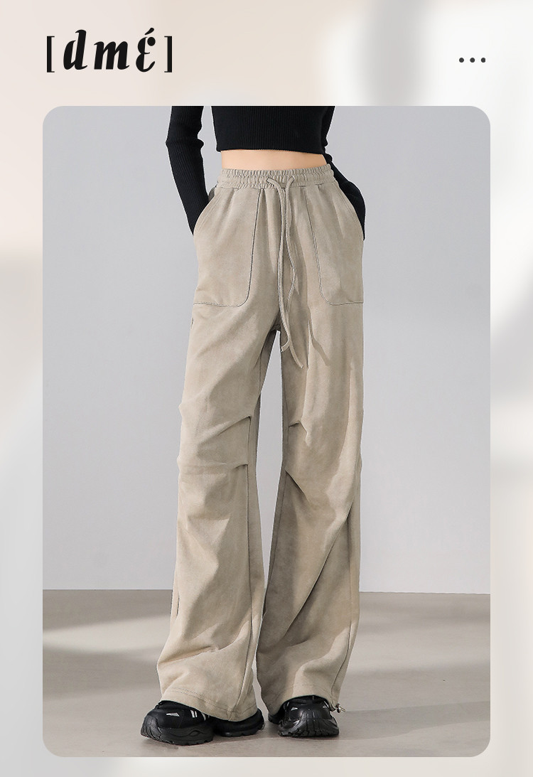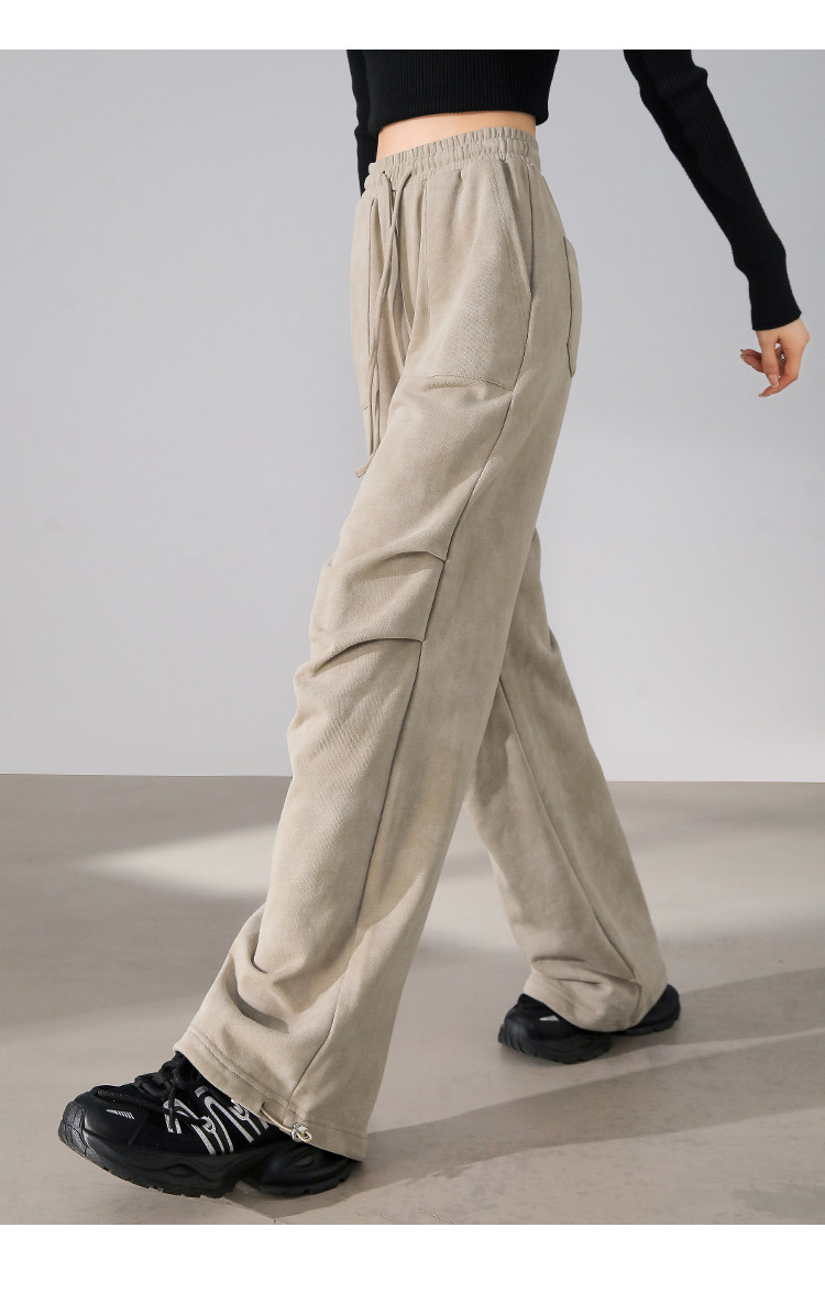 【闲适漫步】100%棉针织宽松显瘦褶皱百搭水洗运动休闲裤女 627777