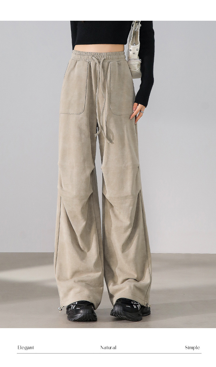 商品名称:【闲适漫步】100%棉针织宽松显瘦褶皱百搭水洗运动休闲裤女 627777