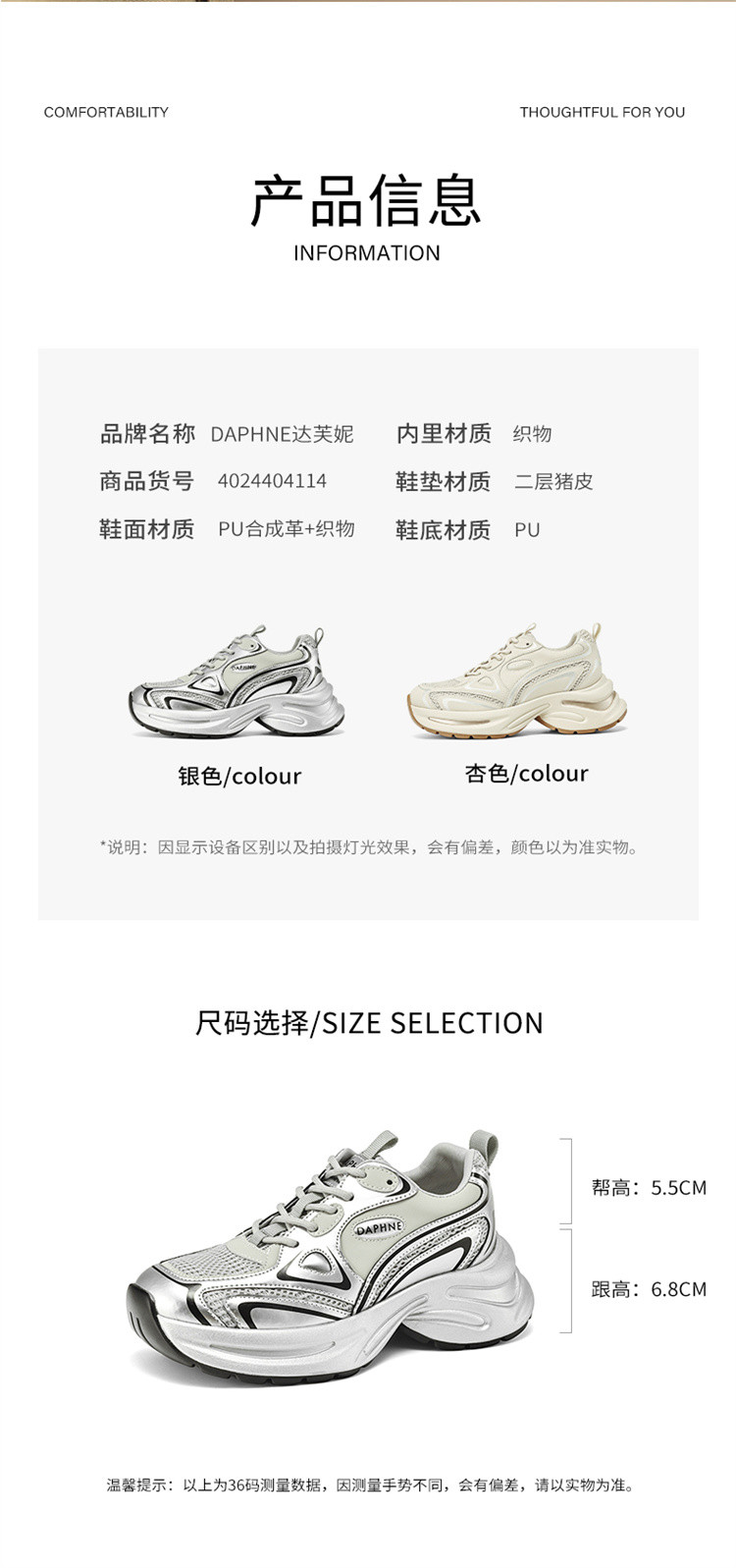 商品名称:老爹鞋女春夏显脚小轻便厚底增高鞋透气网面鞋舒适百搭运动休闲鞋 992535