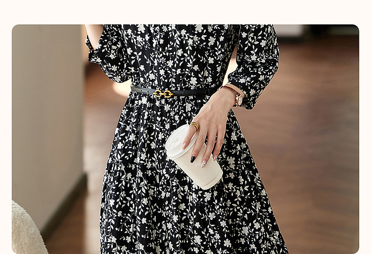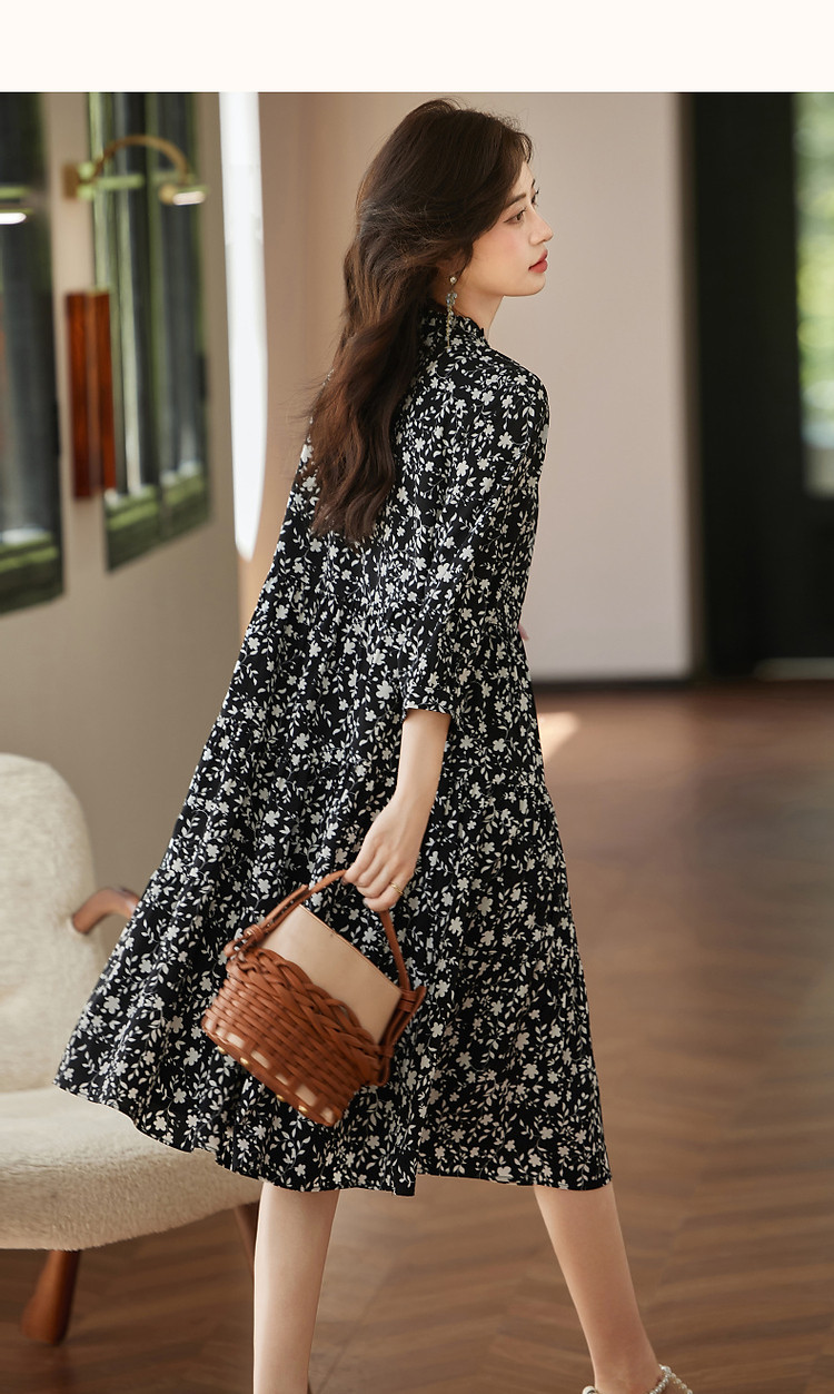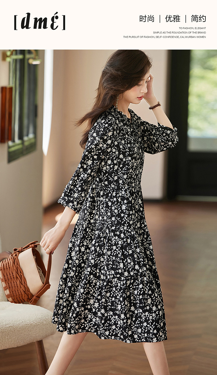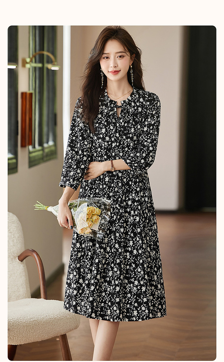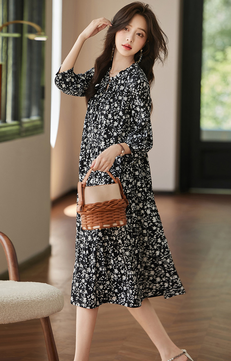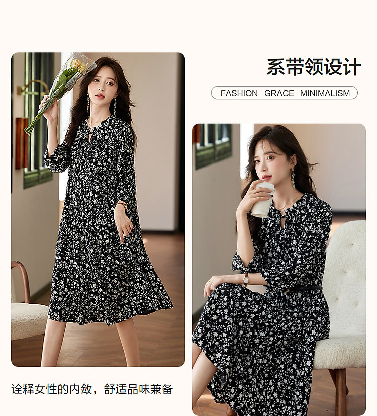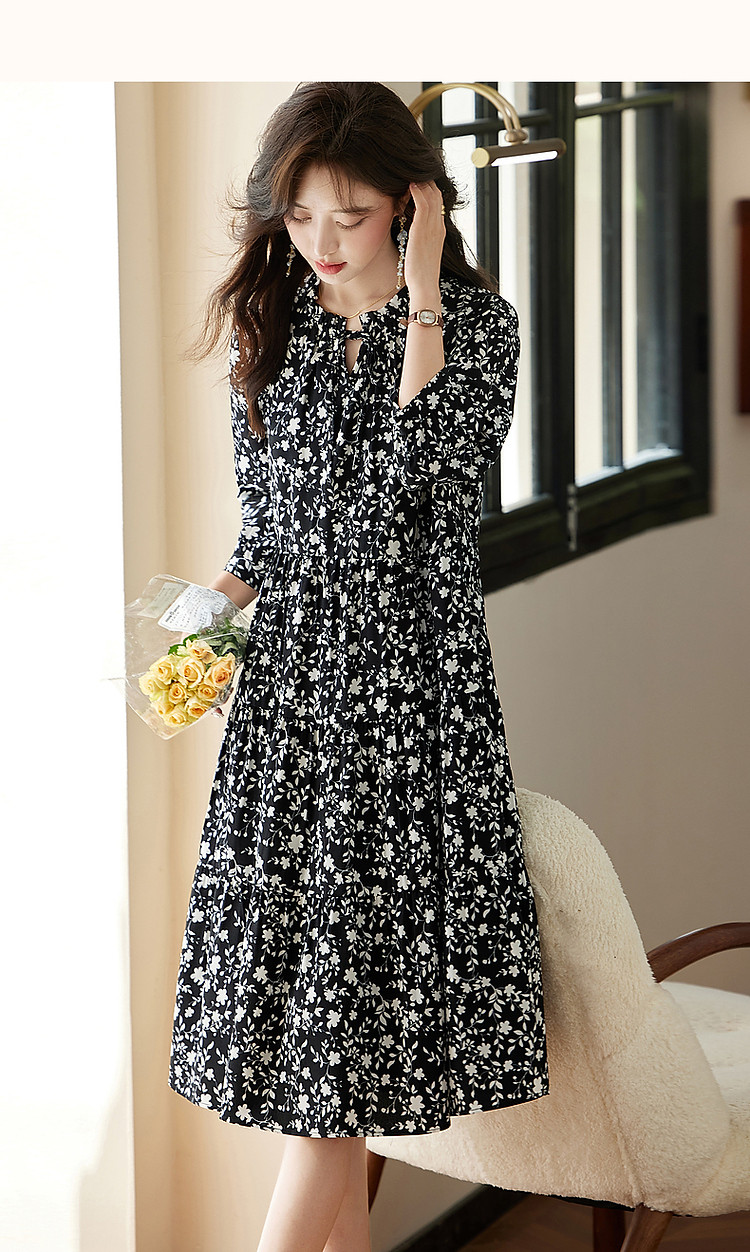 商品名称:【植物系氧气名媛】秋法式度假系带领蛋糕裙碎花大摆遮肉连衣裙女 848513
