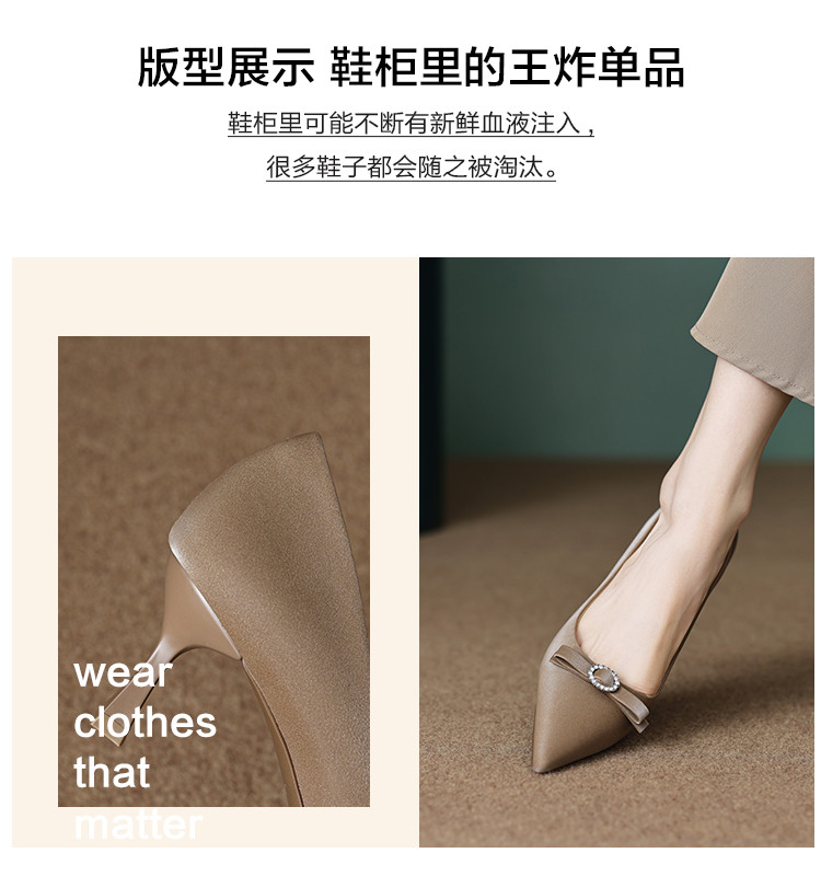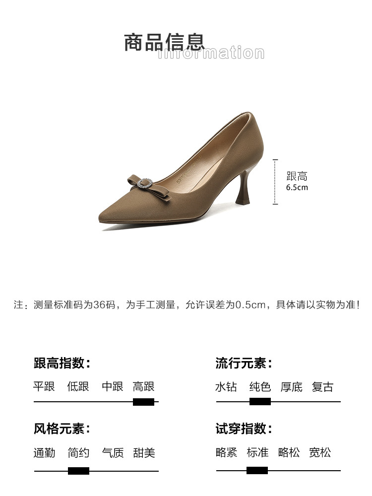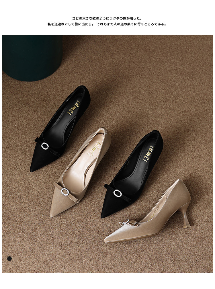 商品名称:2024秋季简约百搭温柔气质高级感纯色水钻蝴蝶结显高女单鞋 161473