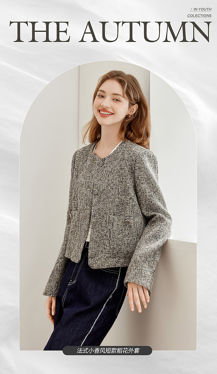 商品名称:【2024秋季】法式小香风粗花呢短款外套女小个子通勤上衣 518164