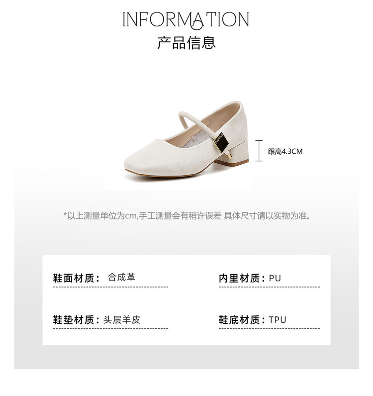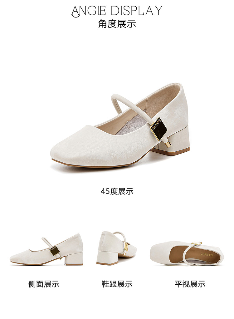 商品名称:玛丽珍鞋女春夏时尚浅口单鞋时装鞋粗跟不累脚百搭职场通勤鞋 099031