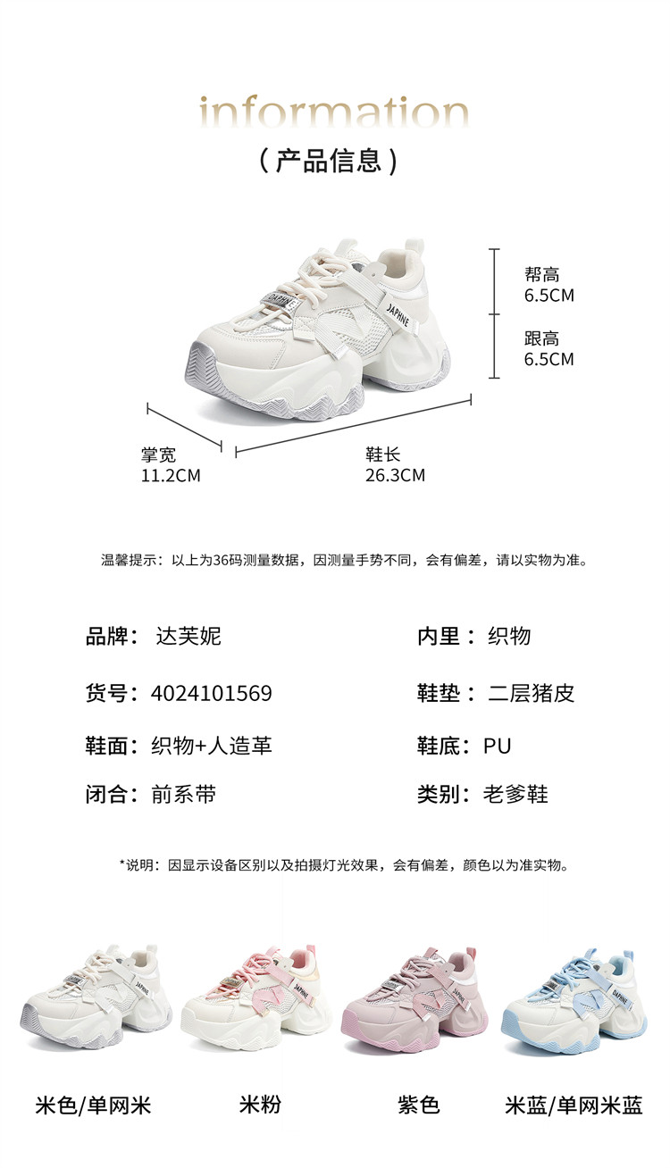 商品名称:老爹鞋女春夏透气薄款网面鞋厚底鞋显脚小轻便舒适运动休闲鞋女 168663